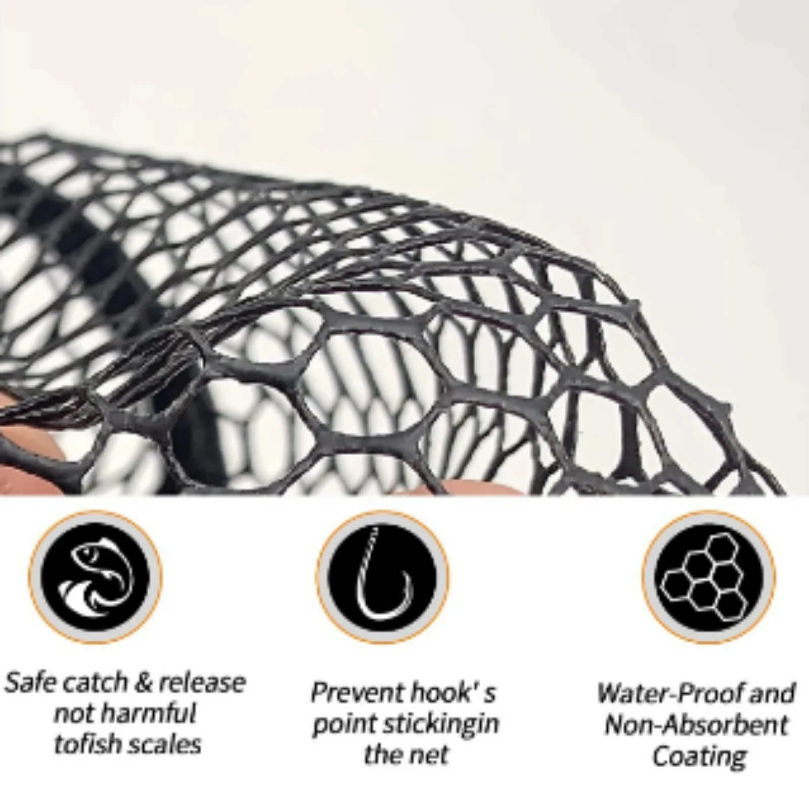 2. El revestimiento de goma en la red la hace muy resistente al gancho, ideal para no enredarse y tener una larga vida útil. Y mejor para peces en situaciones de captura y liberación.