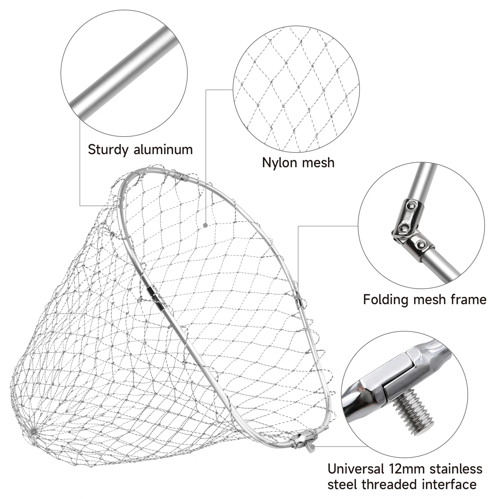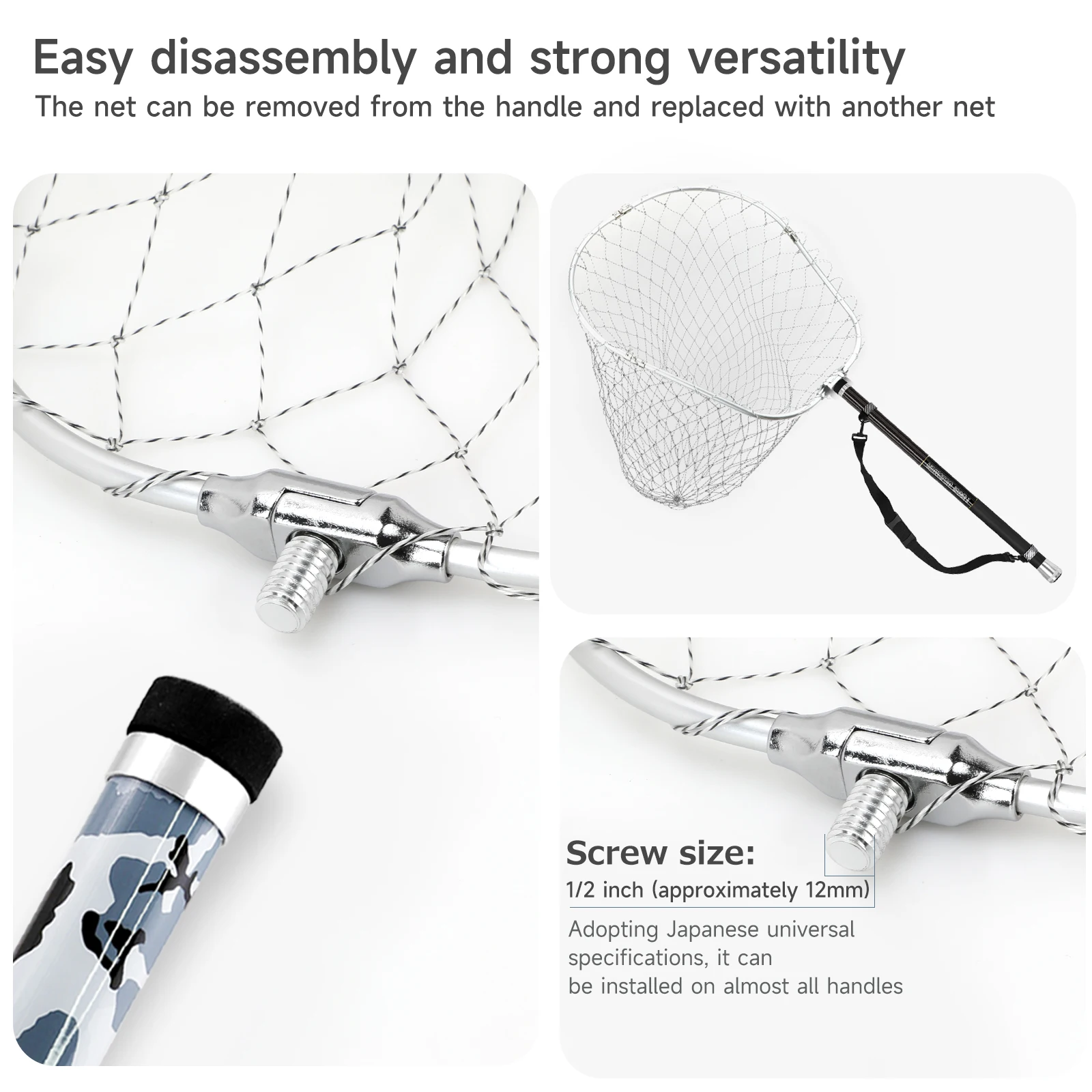 3.Especificación del tornillo: 1/2 pulgada (aproximadamente 12 mm).Las redes de aterrizaje se pueden quitar de las manijas o intercambiables.