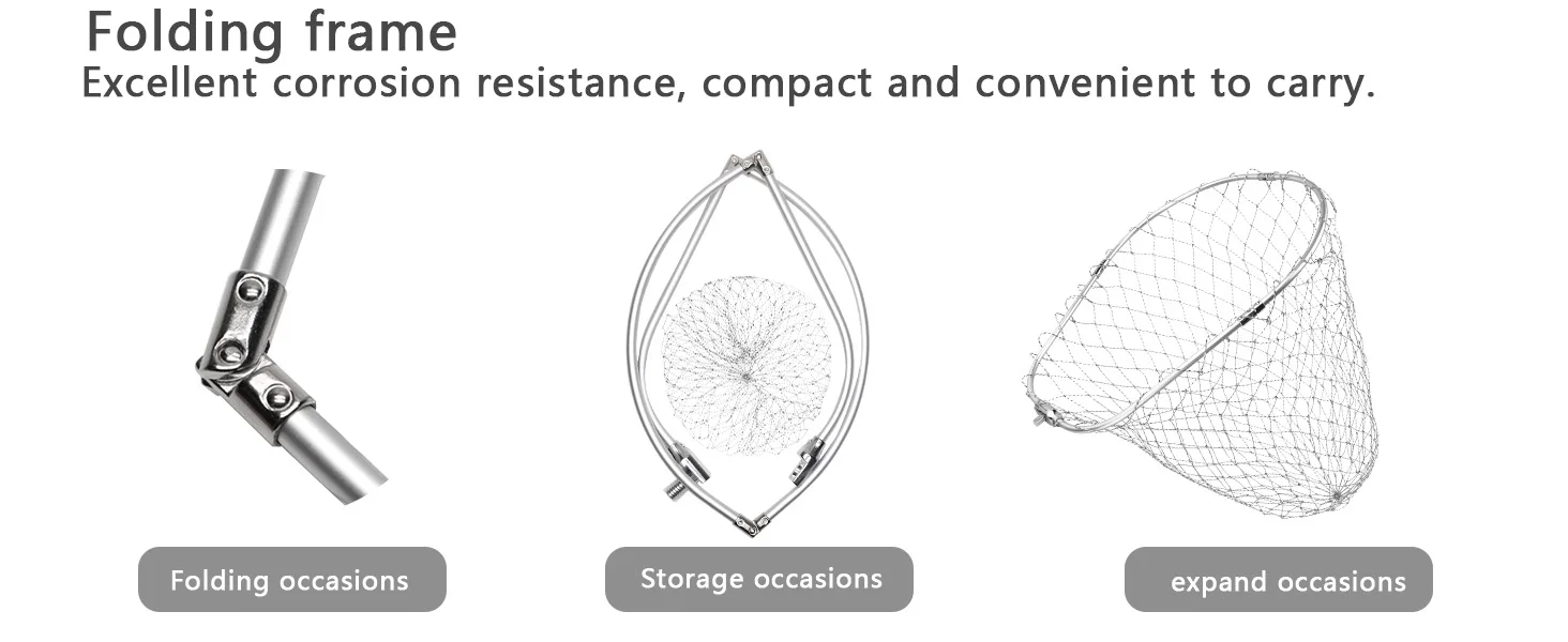 1.La rejilla es ovalada, muy resistente, utiliza material de aluminio liviano y también es seguro capturar peces grandes.