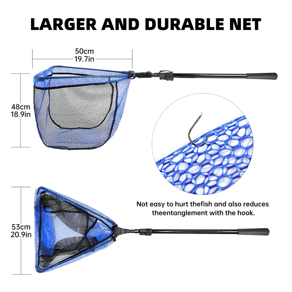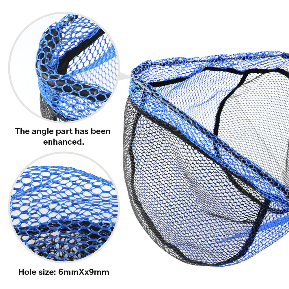 3. RECUBRIDO DE GOMA, PROTECCIÓN DE PESCA Y DURADERO: Las redes recubiertas de goma garantizan la captura y liberación segura de los peces; el revestimiento no absorbente también evita que las mosquiteras se manchen o absorban olores.Recubrimiento de goma engrosado para prolongar la vida útil, proporcionando robustez y durabilidad.