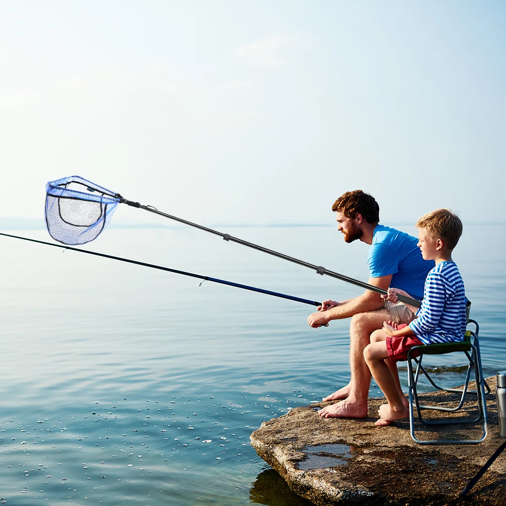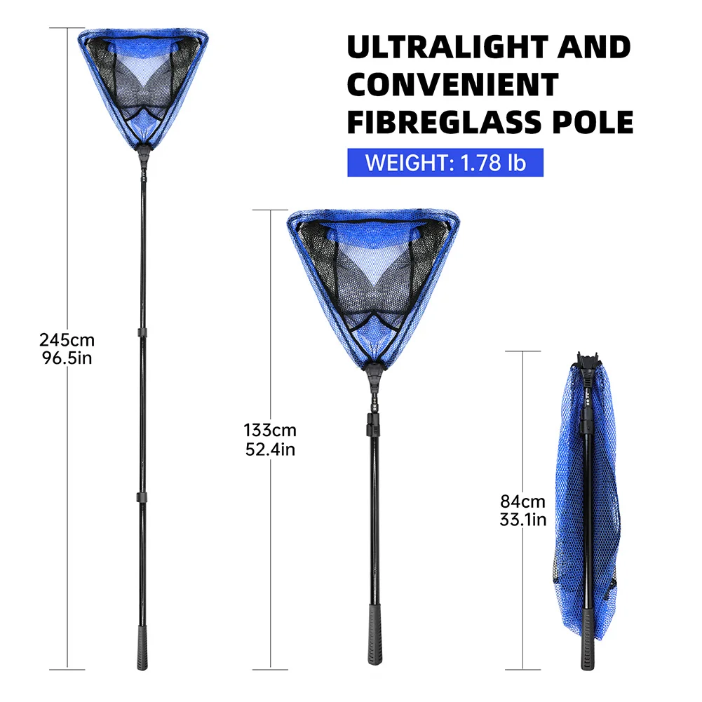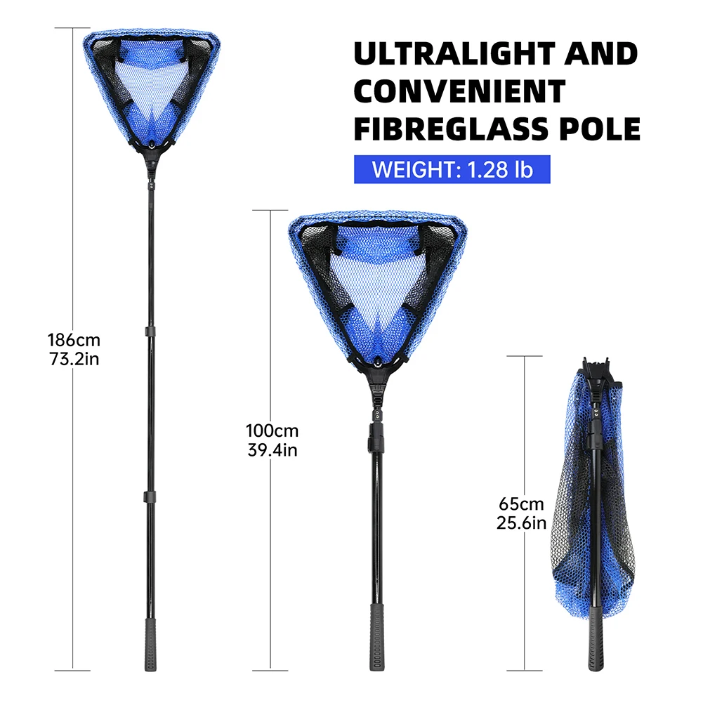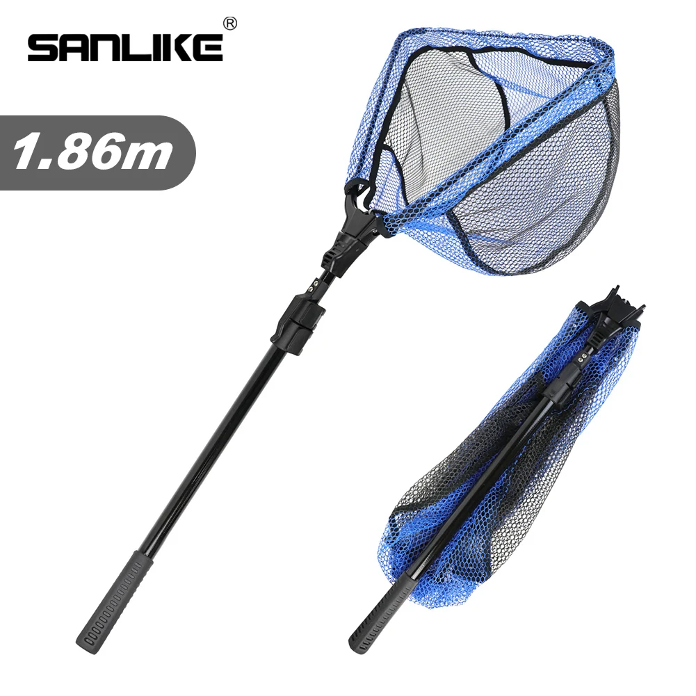 SANLIKE-red de pesca portátil plegable, dos colores, recubierto de goma, impermeable, red de nailon, fibra de vidrio, herramientas de pesca con poste telescópico