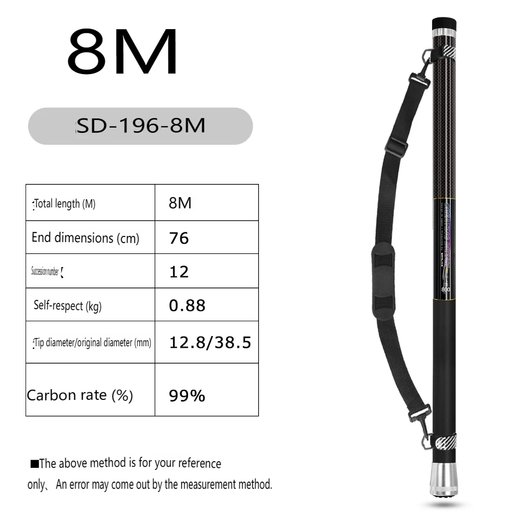 Señal de pesca retráctil SANLIKE de 8m, poste de fibra de carbono con agarre de aterrizaje antideslizante para aparejos de pesca de carpa, herramientas de captura y liberación