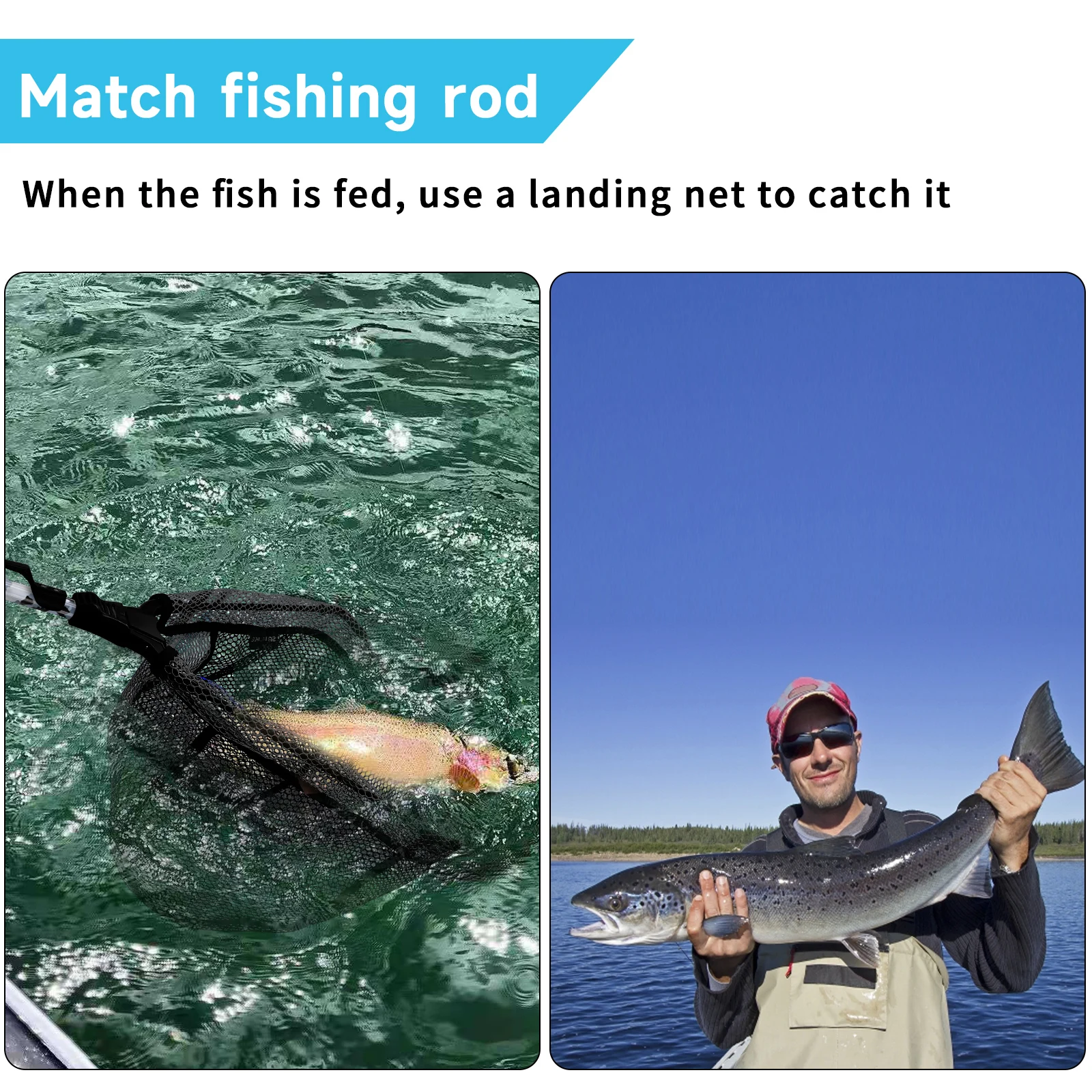 4. ¡Las redes retráctiles son adecuadas para todos los pescadores! La caña de fibra de vidrio es ligera pero de diseño robusto y viene con clips para enganchar en su chaleco de pesca para mayor comodidad.