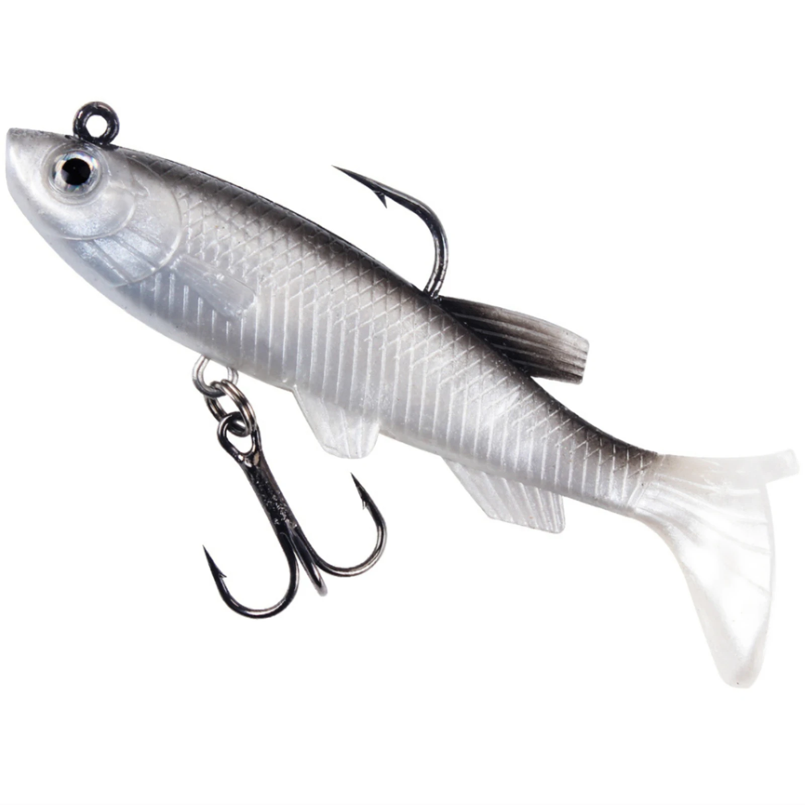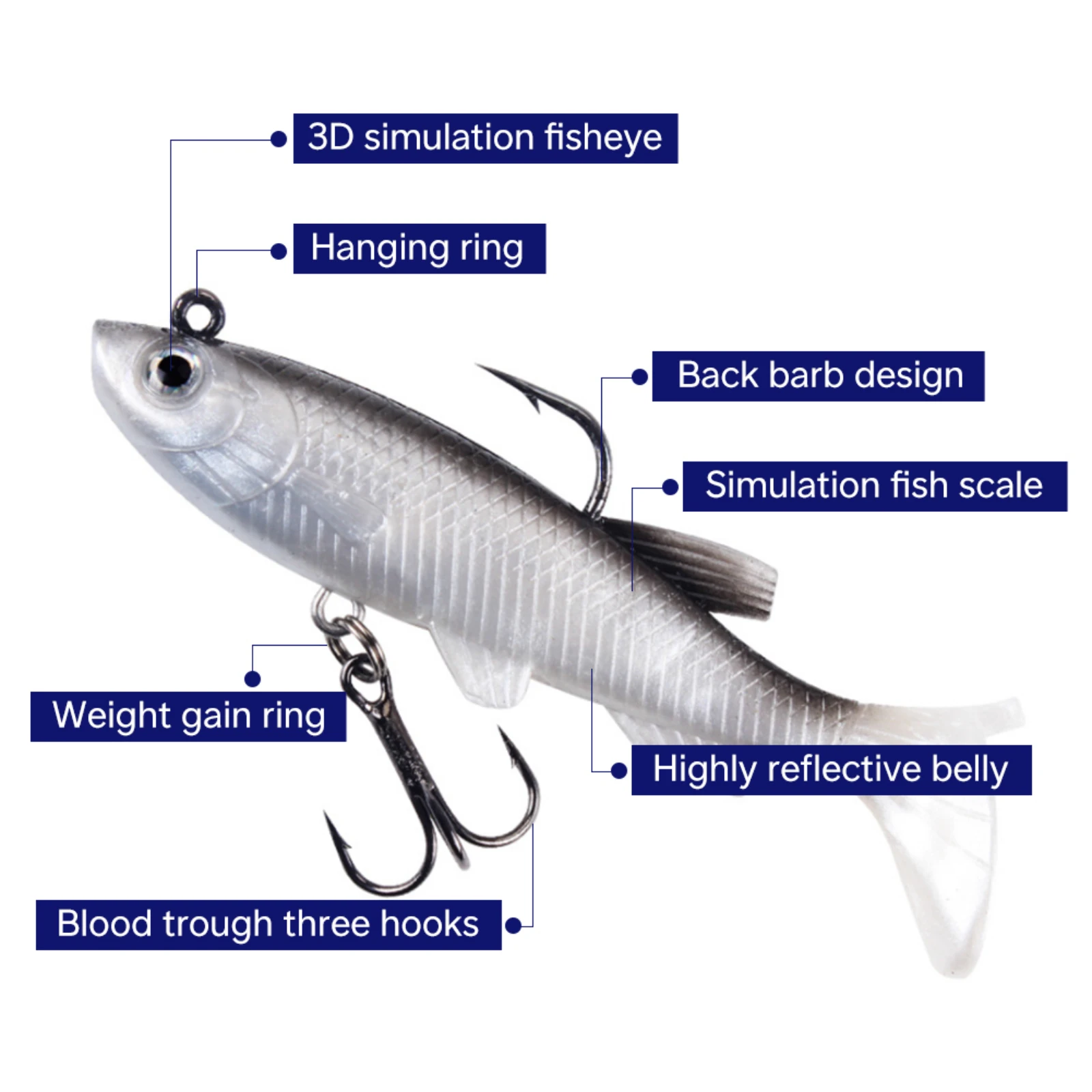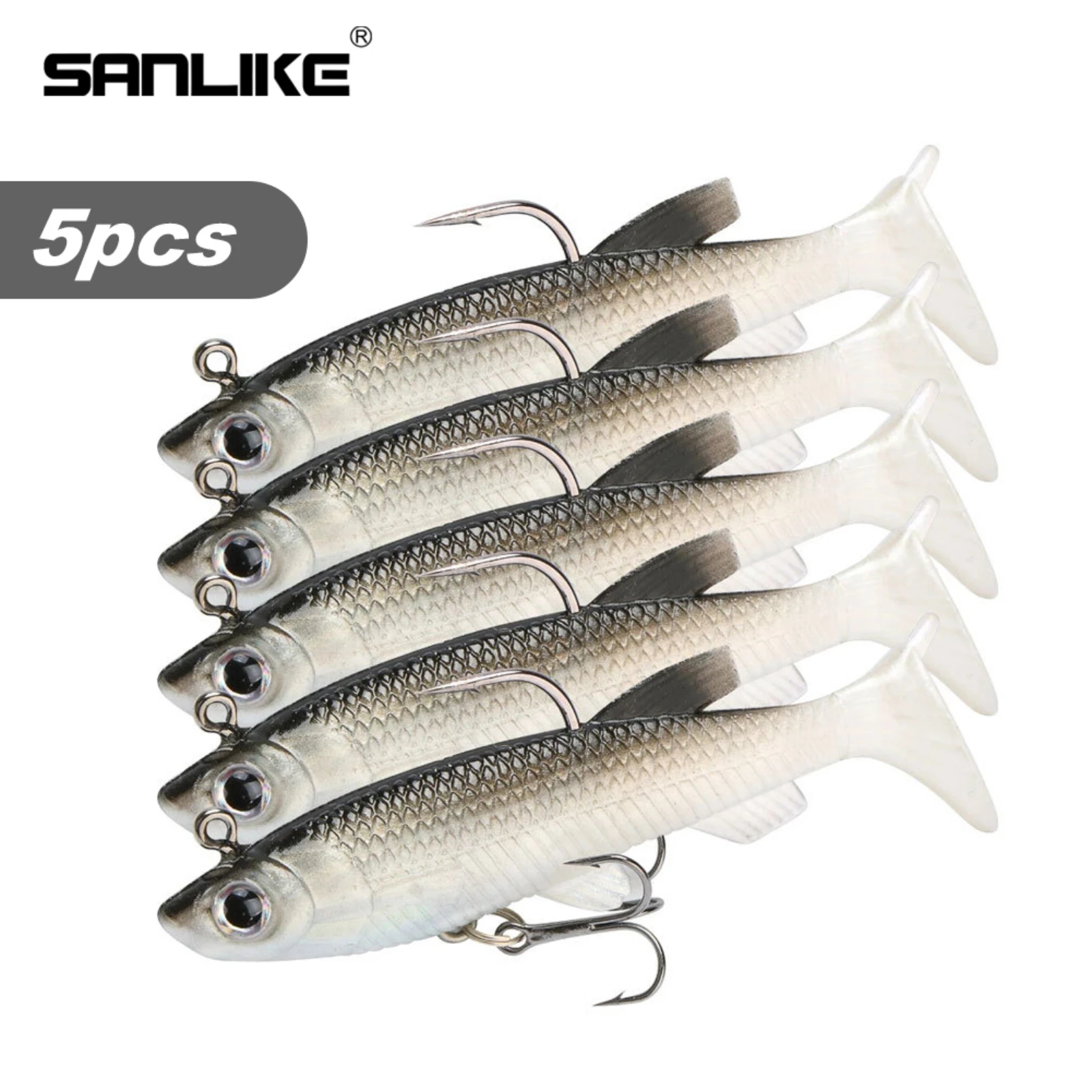 SANLIKE 5 uds cebo suave Señuelos de pesca 8cm Swimbait con anzuelos de acero al carbono diseño sin malezas de PVC de alta elasticidad para lubina trucha Lucio