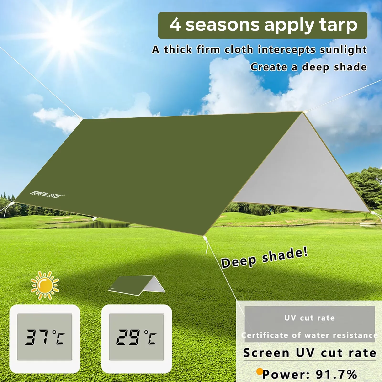 3.Gran revestimiento plateado para una protección eficiente contra el calor y el sol, el revestimiento impermeable de PU refuerza la superficie, sin miedo a las tormentas.