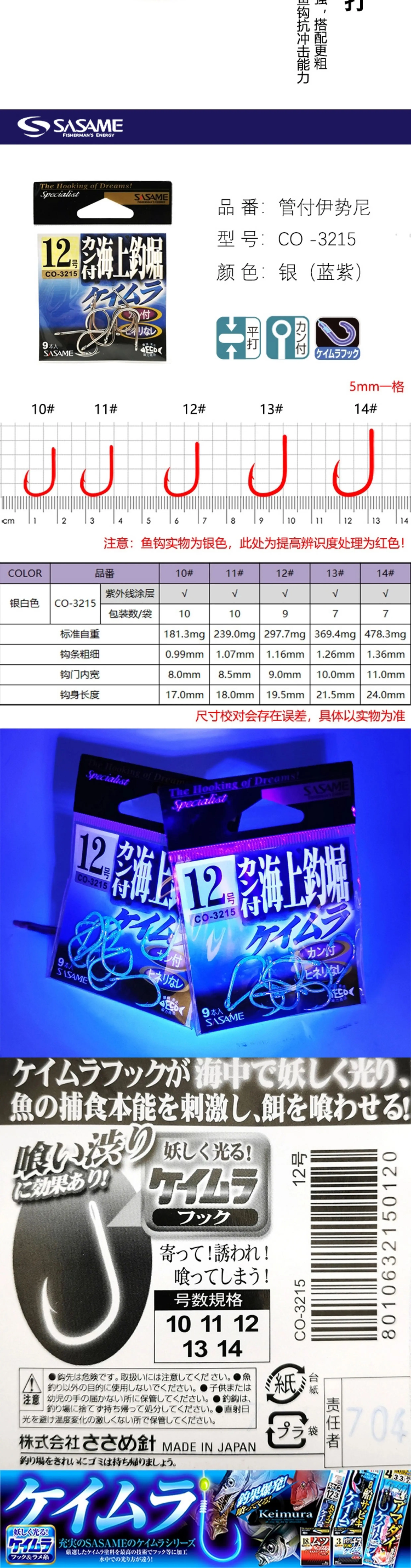 SASAME-anzuelo de pesca japonés Sand Mai, anzuelo afilado ultravioleta, CO-3215, tubo Senkai luminoso, Fu Isani, barco de pesca en el mar