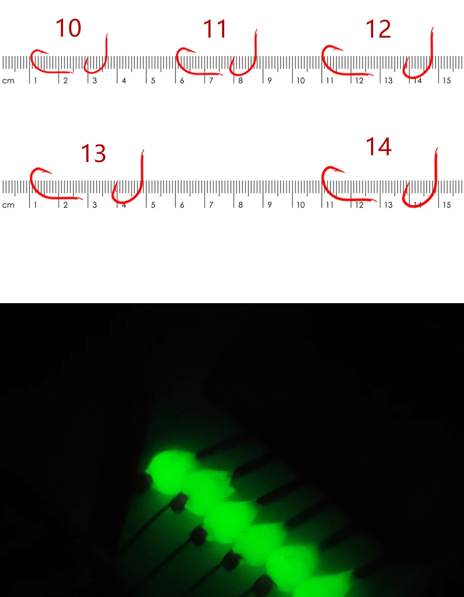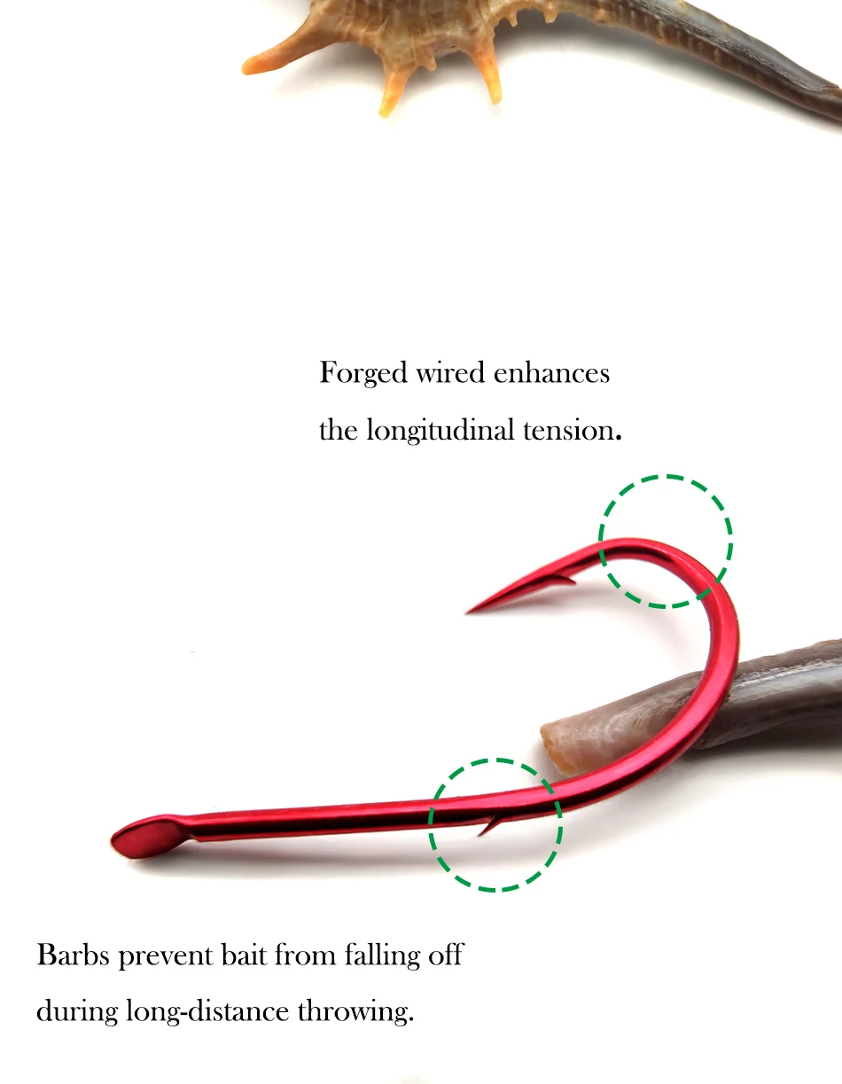 Este gancho de alambre forjado es perfecto cuando se usan cebos naturales largos, como camarones, gusanos. La gota luminosa puede atraer a los peces a reunirse.
