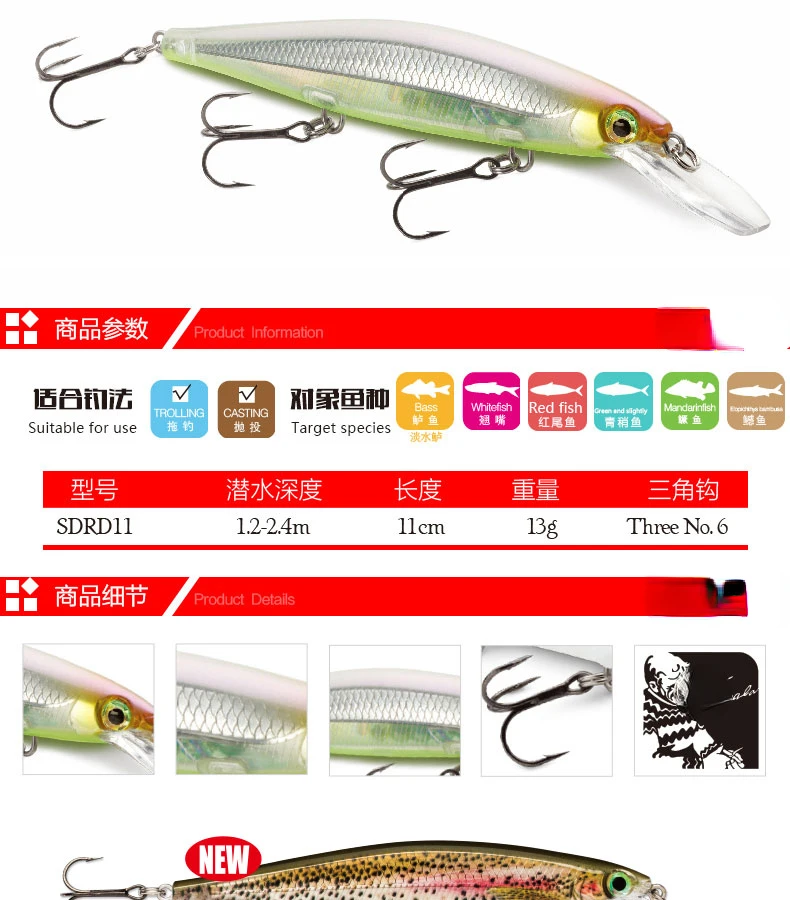 SDRD11 Phantom Mino, señuelo de fundición larga, cebo duro, boca Cocked Bass