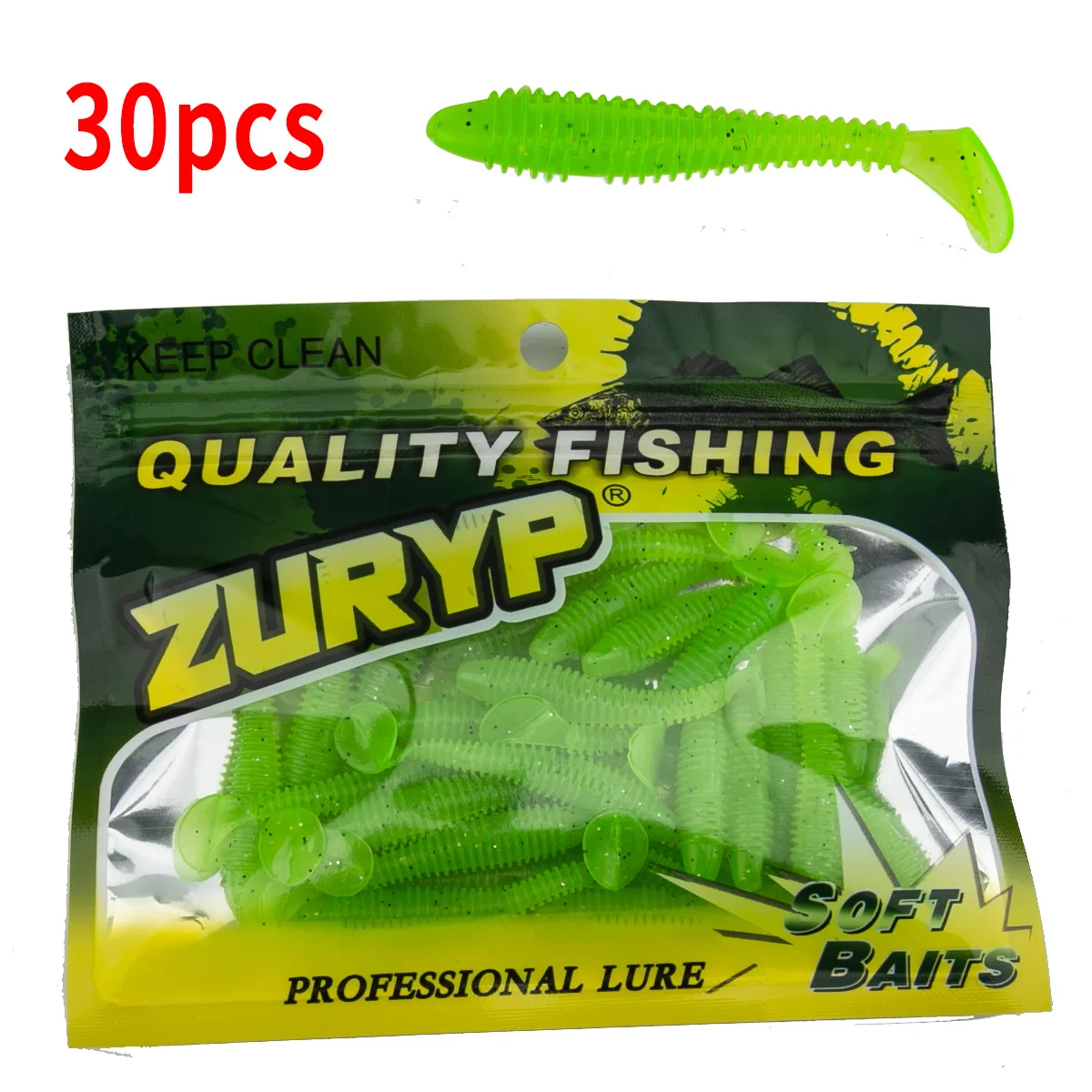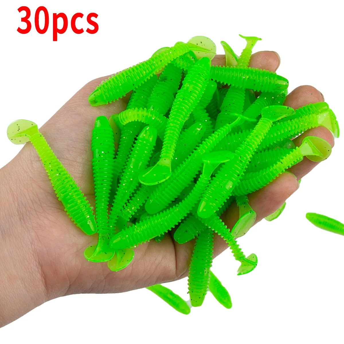 Sea. 30 piezas blandos de Yolo-Señuelos de Pesca, cebo de gusano de cola en T, 55mm, 1,3g, Wobblers, señuelo de pesca de silicona para carpa, Swimbait Artificial