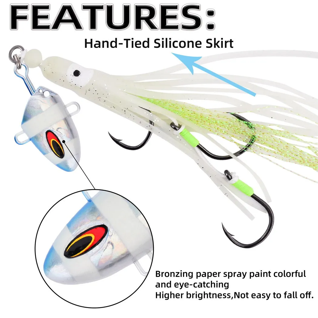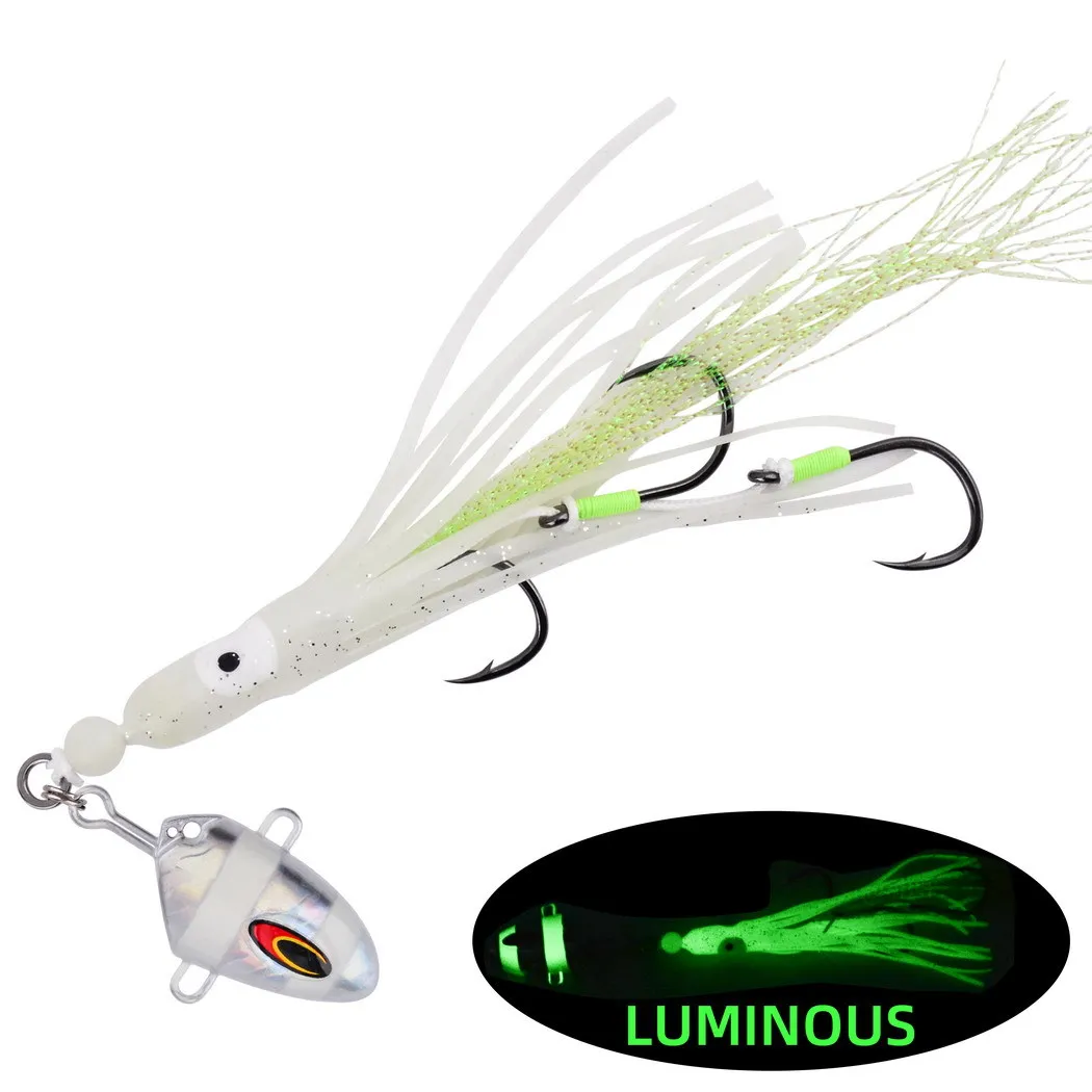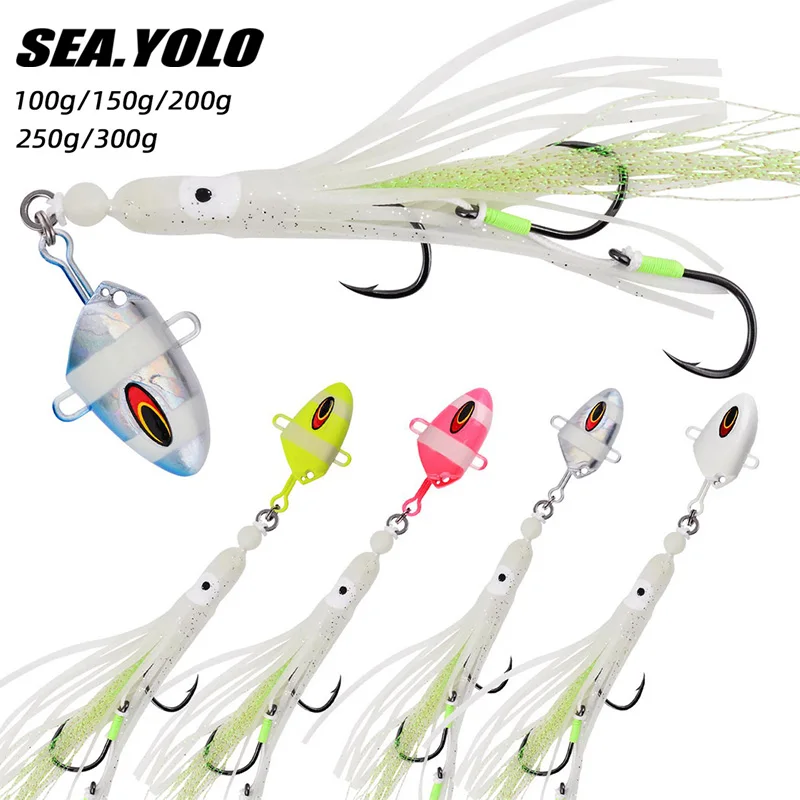 Sea Yolo-plantilla de pesca para barco, 100g-300g, cabeza de plomo, placa de hierro, falda de calamar suave, señuelo con anzuelos de asistencia de Metal, señuelo de Jigging que se hunde