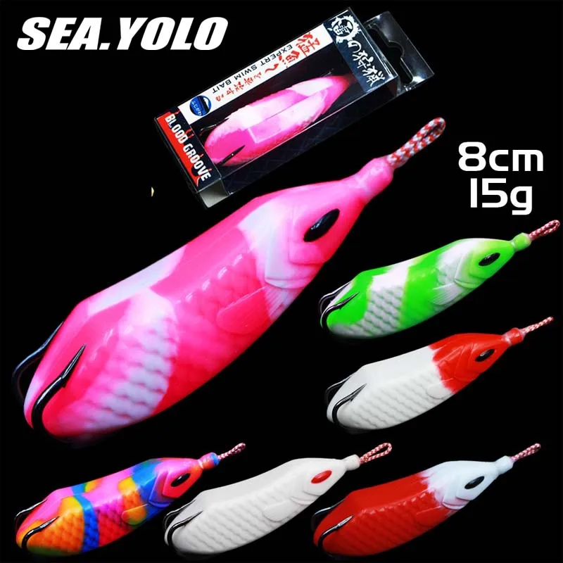 Sea Yolo-señuelo de pesca suave, anzuelo puntiagudo, cebo Artificial, aparejos de pesca en el mar para lubina, 8cm/15g