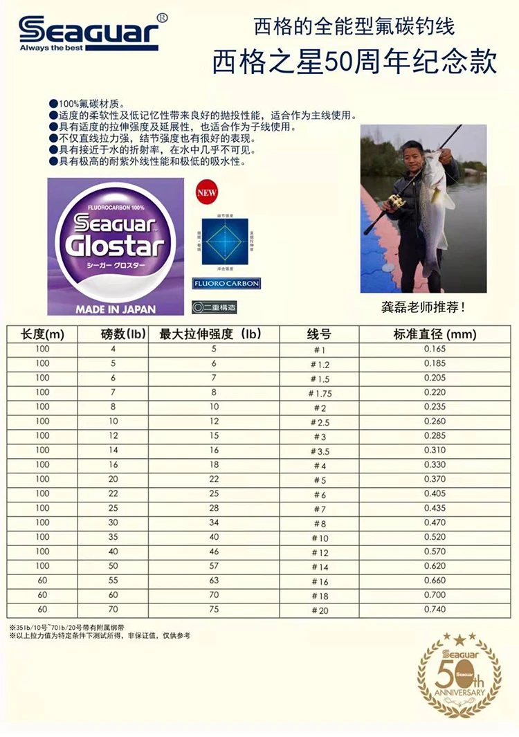 (5). Es una línea de fibra de carbono de alta calidad con 100% de pureza que utiliza la tecnología única de extracción de lodo de carbono de Seaguar.