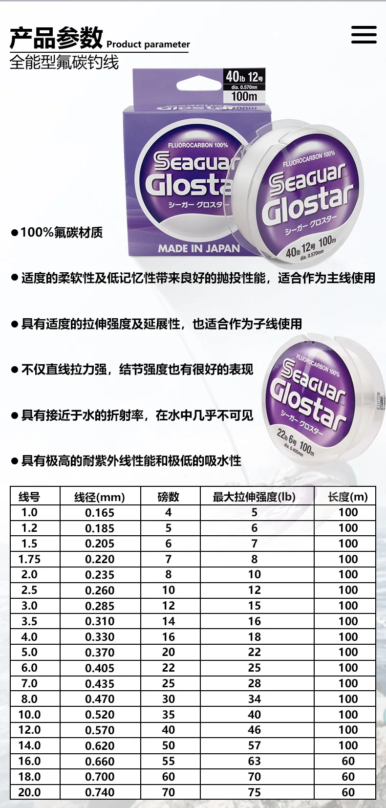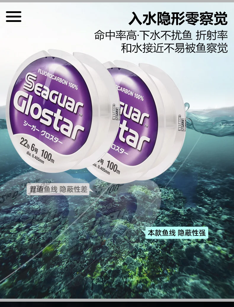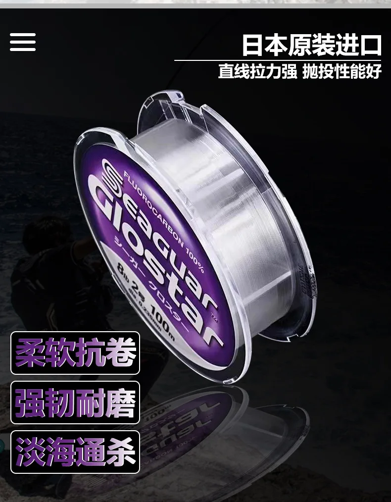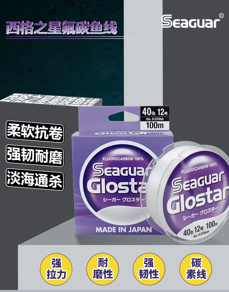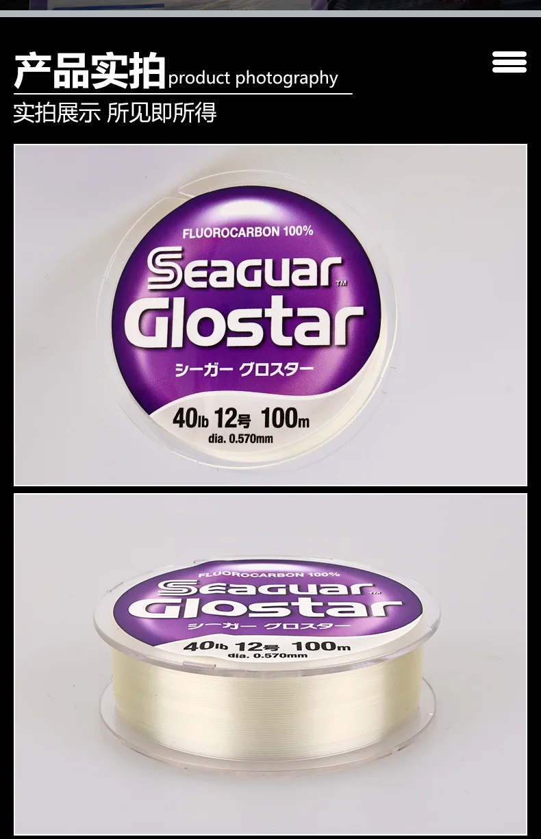 Seaguar Glostar-línea de pesca de fluorocarbono 100%, línea líder de choque FC, línea de señuelo líder de fluorocarbono, correas