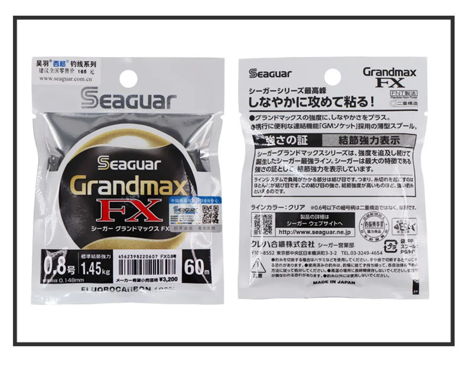 SEAGUAR GRAND MAX FX 60M líneas de pesca 100% hilo de pesca de fluorocarbono 0,65 KG-13,0 KG resistente al desgaste buena transmisión de luz