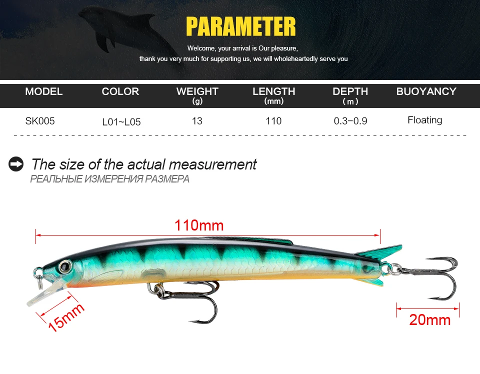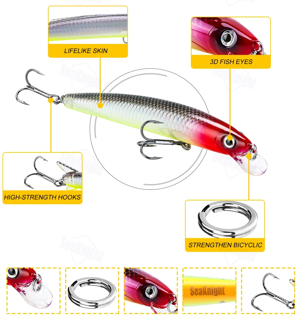 SeaKnight 1 unidad SK005 Minnow 13g 11cm 0.3-0.,9M señuelo de pesca cebos duros señuelos de pesca de carpa Swimbait lago río aparejos de pesca de mar