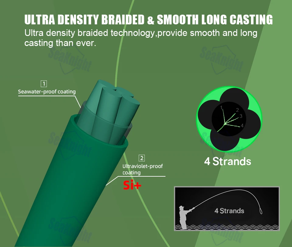 3. densidad de ultra Trenzado: La línea de pesca está bien tejida y no estará tan suelta como otras líneas de pesca, lo que la hace menos propensa a la absorción de agua y a causar problemas de hinchazón.