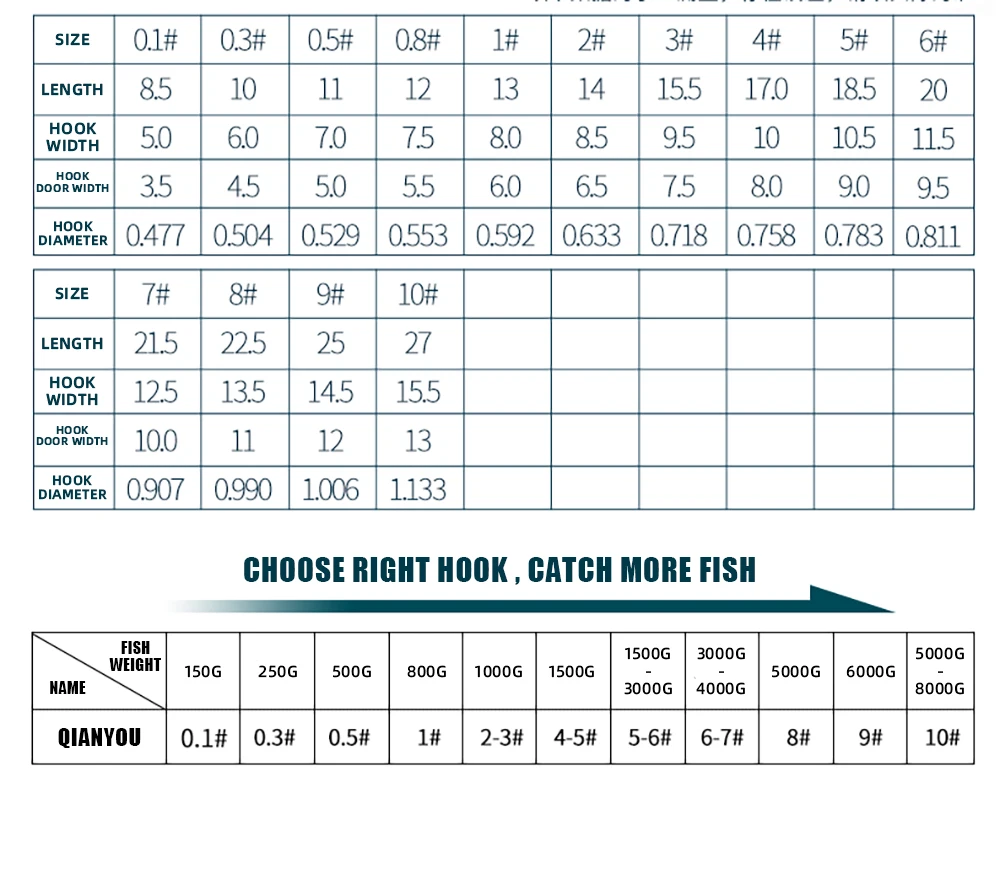 5: 16 tamaños en total. Este anzuelo tiene 16 tamaños que pueden atrapar peces de diferentes tamaños y cumplir con los requisitos de la gran mayoría de los pescadores para anzuelos de pesca