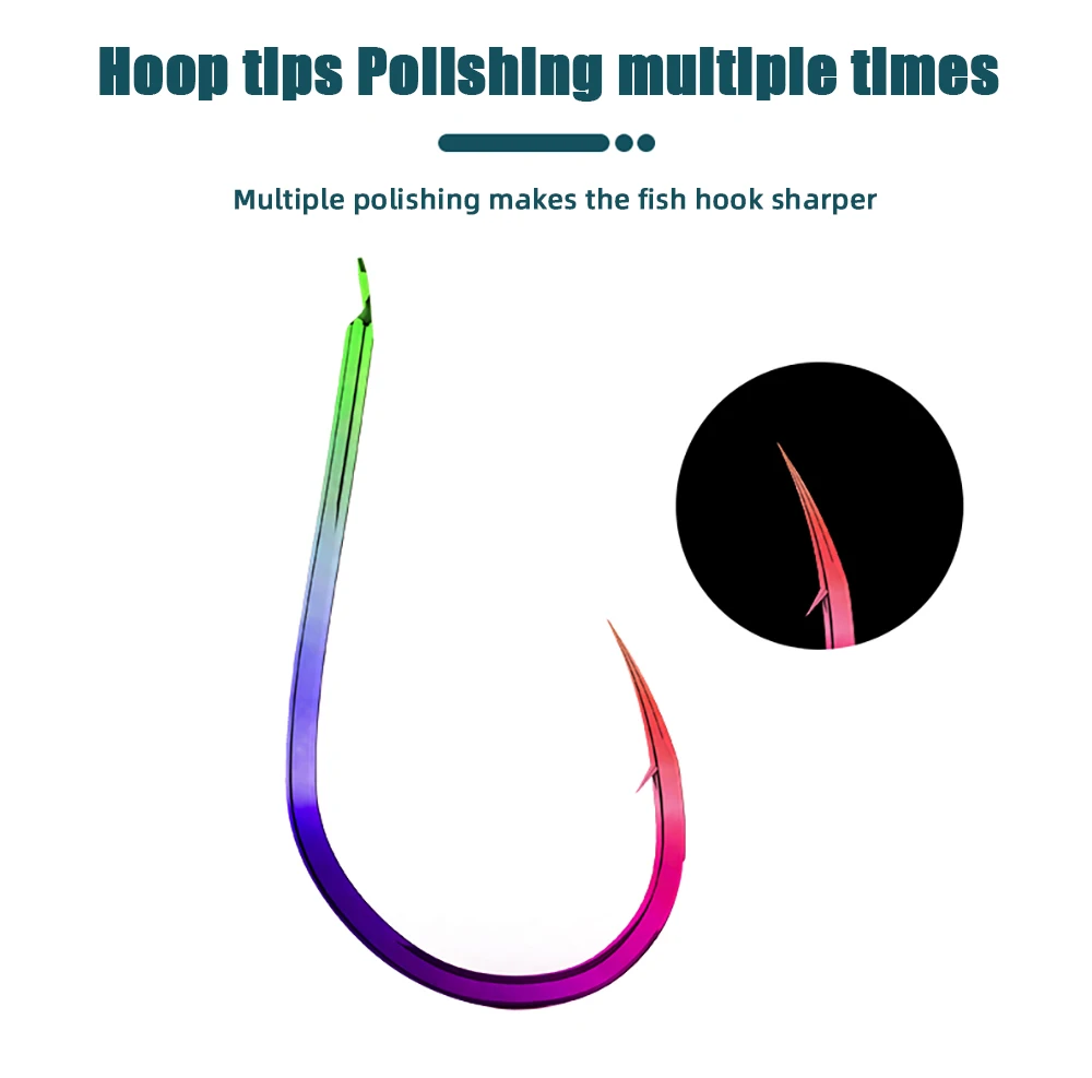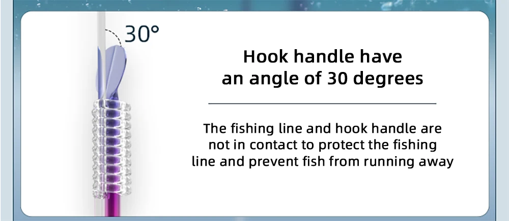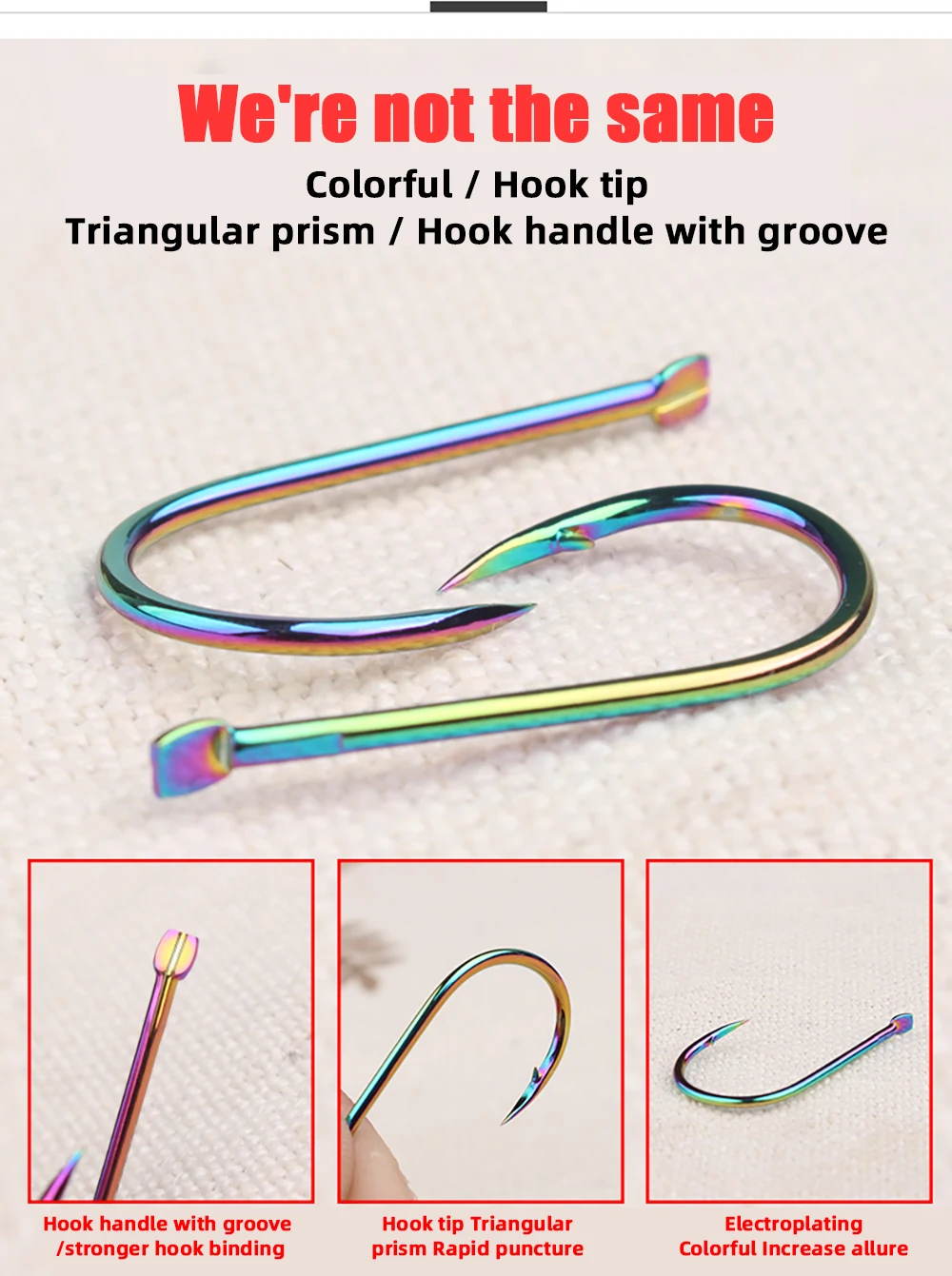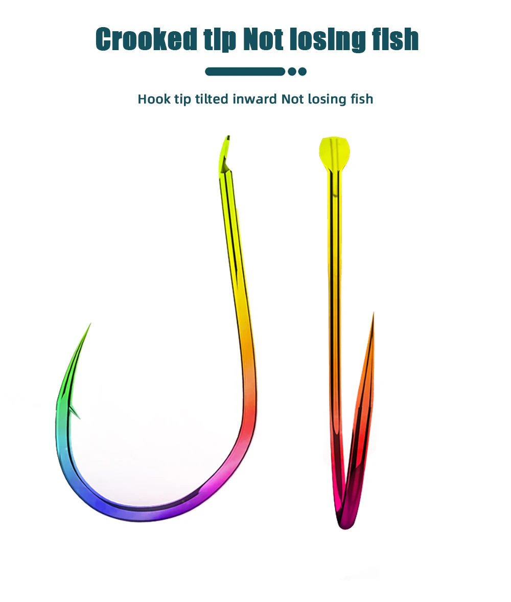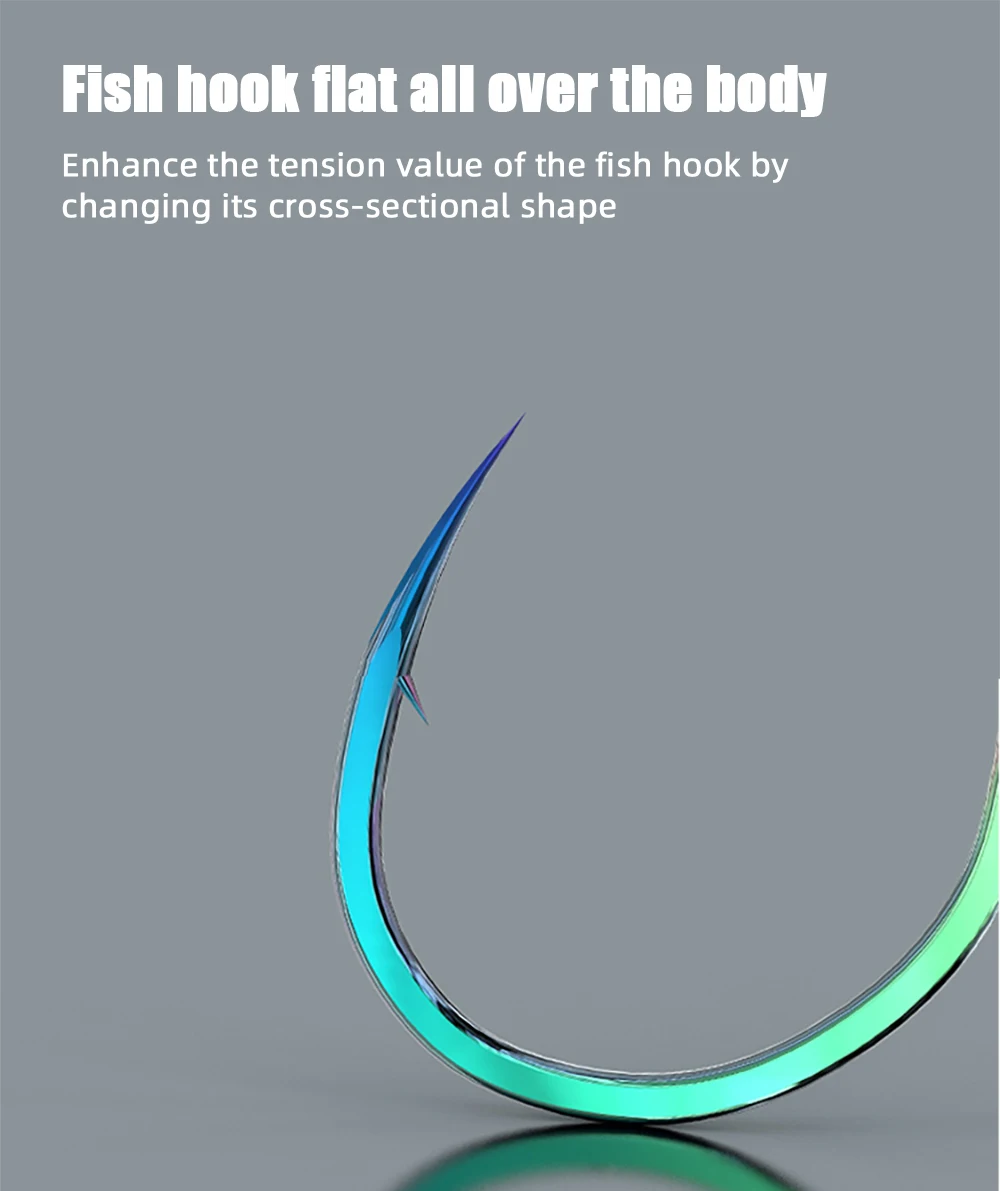 1: Gancho de púas. Este anzuelo tiene púas que pueden atrapar peces fácilmente, no es fácil escapar de los peces.Acero 2Hgh-carbono. Este material de gancho es acero de alto carbono, no se rompe ni se deforma fácilmente.