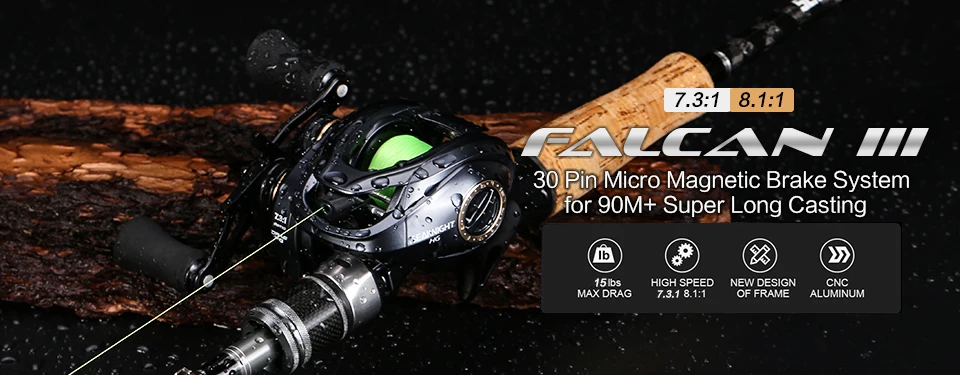 SeaKnight marca FALCAN III serie Baitcasting carrete 7,3: 1 8,1: 1 ultraligero 180g MAX Drag Power 15LB carrete de pesca de fundición larga