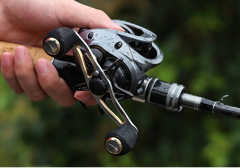El diseño compacto del mango y la perilla de arrastre de estrella es más ergonómico, el mango de aluminio ligero con perilla de EVA suave, para pescar durante mucho tiempo.