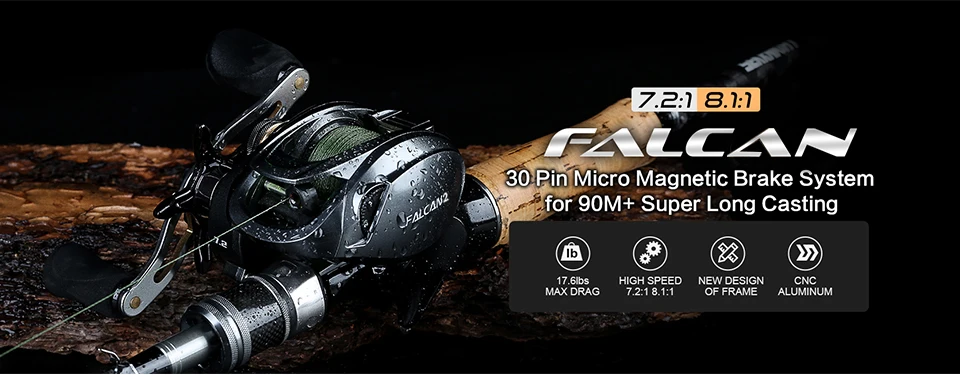 Marca SeaKnight FALCAN2 Series Baitcasting carrete de pesca 7,2: 1 8,1: 1 ultraligero 190g MAX Drag Power 18LB pesca de fundición larga