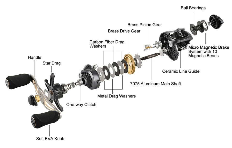 Sistema de freno micromagnético de nueva generación para un control preciso, 10 granos magnéticos colocados en el carrete para optimizar el efecto magnético portado de aluminio, ofrece el mejor control de fundición.
