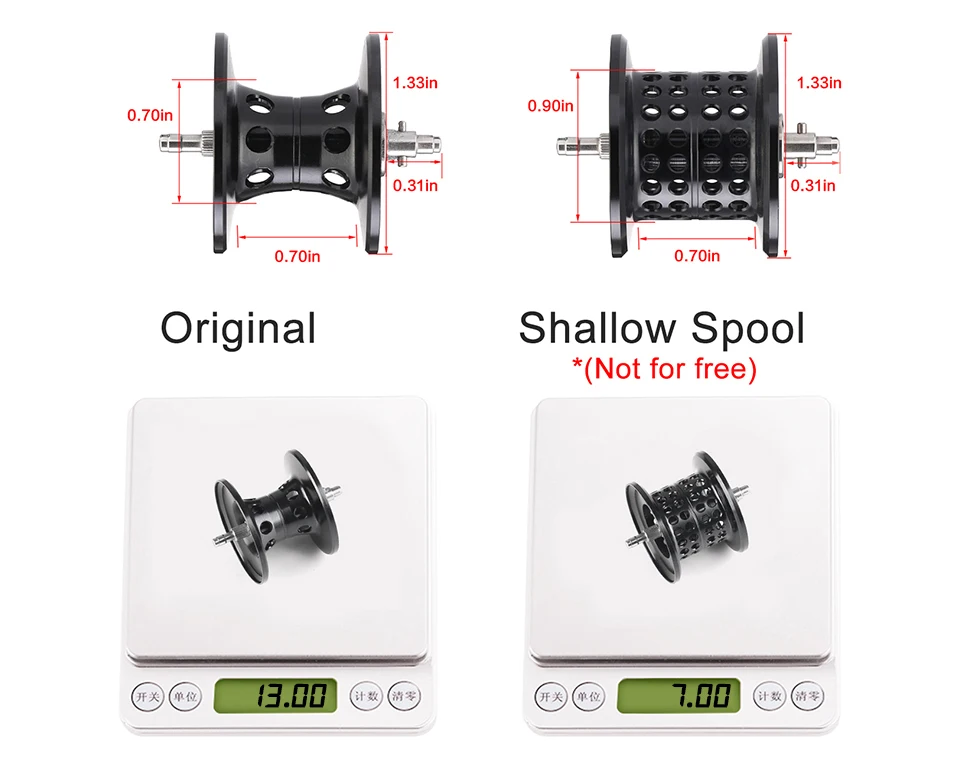 Respuesta: SÍ, tiene un carrete de repuesto poco profundo para la venta. Si no ha comprado el carrete, verifique la elección del tamaño cuidadosamente antes de realizar un pedido. Uno es solo carrete, otro incluye carrete y carrete poco profundo. Si ha comprado el carrete y quiere un carrete de repuesto, envíenos la imagen del carrete poco profundo, le diremos cómo comprar un carrete extra poco profundo. El peso del carrete es de aproximadamente 14g.