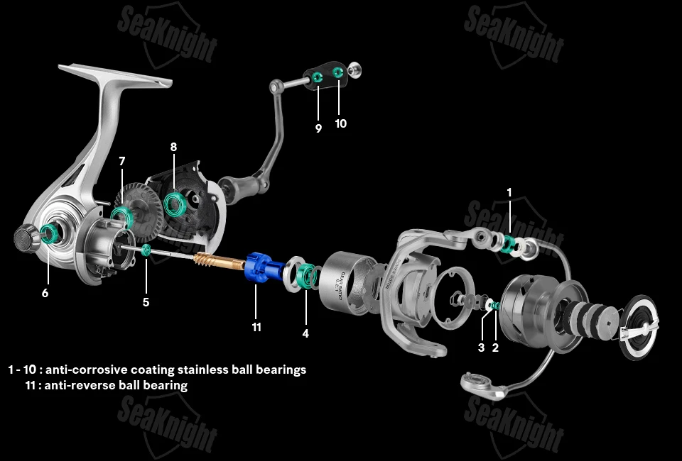 Respuesta: Sí, 10 rodamientos de bolas inoxidables + 1 rodamiento de bolas antirretroceso proporcionan una acción suave en la pesca. La posición precisa de cada rodamiento por favor, compruebe en la descripción del producto. Si no puede encontrar 10 rodamientos, por favor déjenos un mensaje, le ayudaremos a encontrar todos ellos.