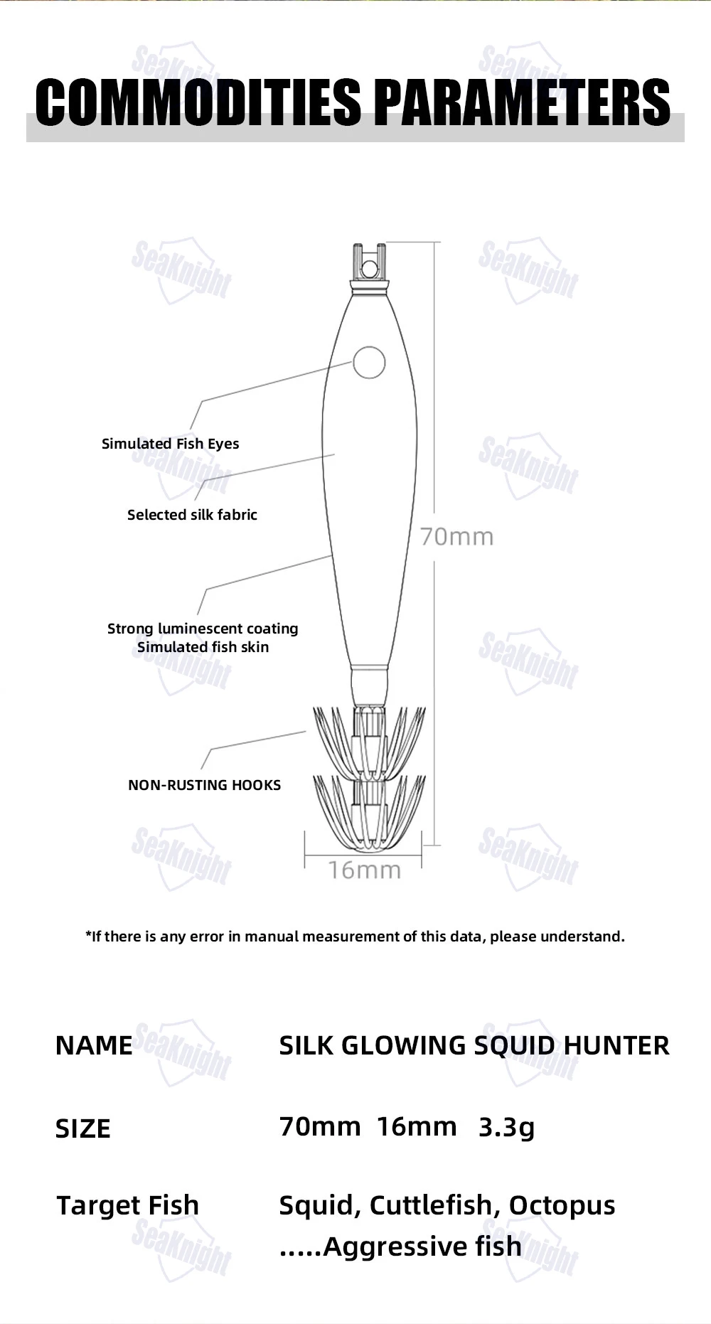 Aviso 1: Como pescadores profesionales en el mar, 01: Sugiero elegir varios colores de cebo para adaptarse a diferentes calamares y calamares.02: Sugiero comprar más cebo, lo cual es conveniente para reemplazar y usar en cualquier momento, ¡lo más importante es más barato!!
