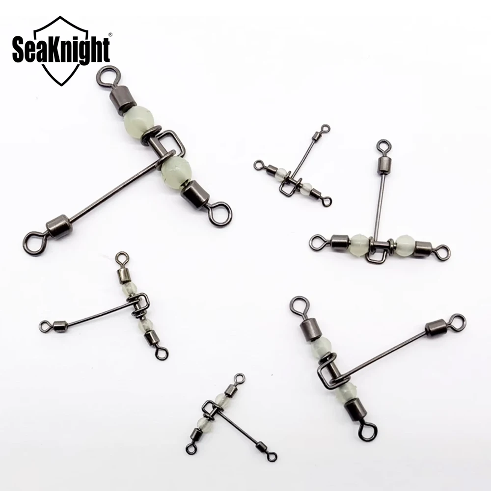 Conector de pesca de acero inoxidable SeaKnight 2024, 10 unidades/1 bolsa, giratorios de Metal, tres cabezales, anillos de conexión luminosos, giratorios de pesca en el mar a presión