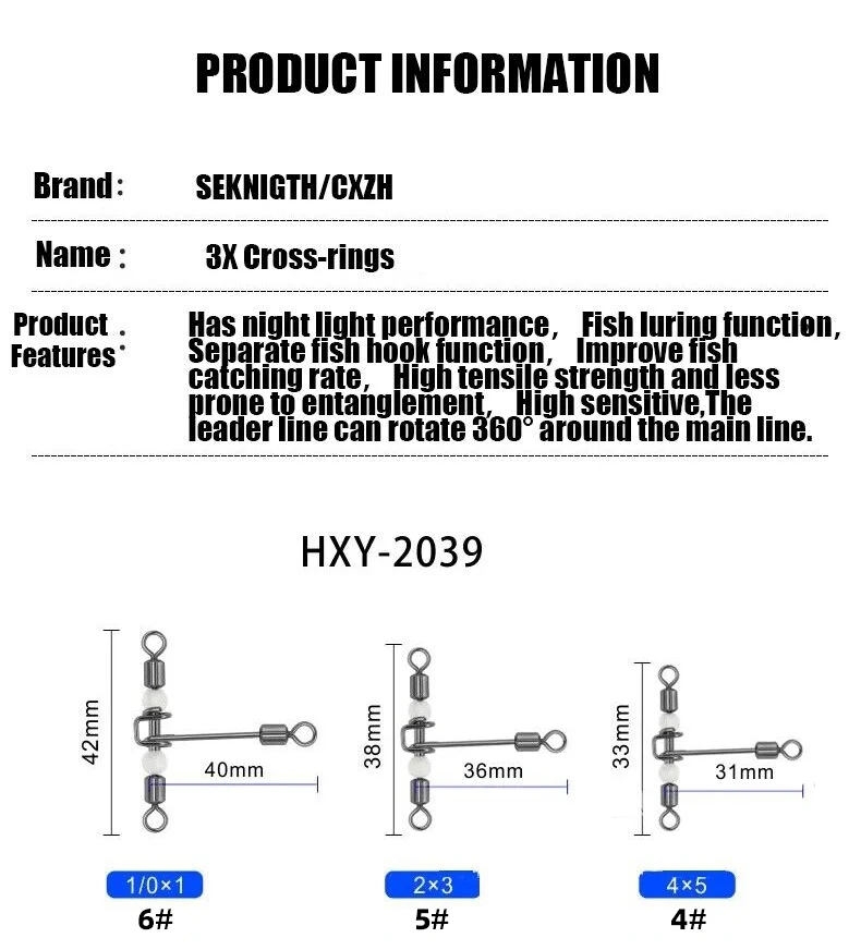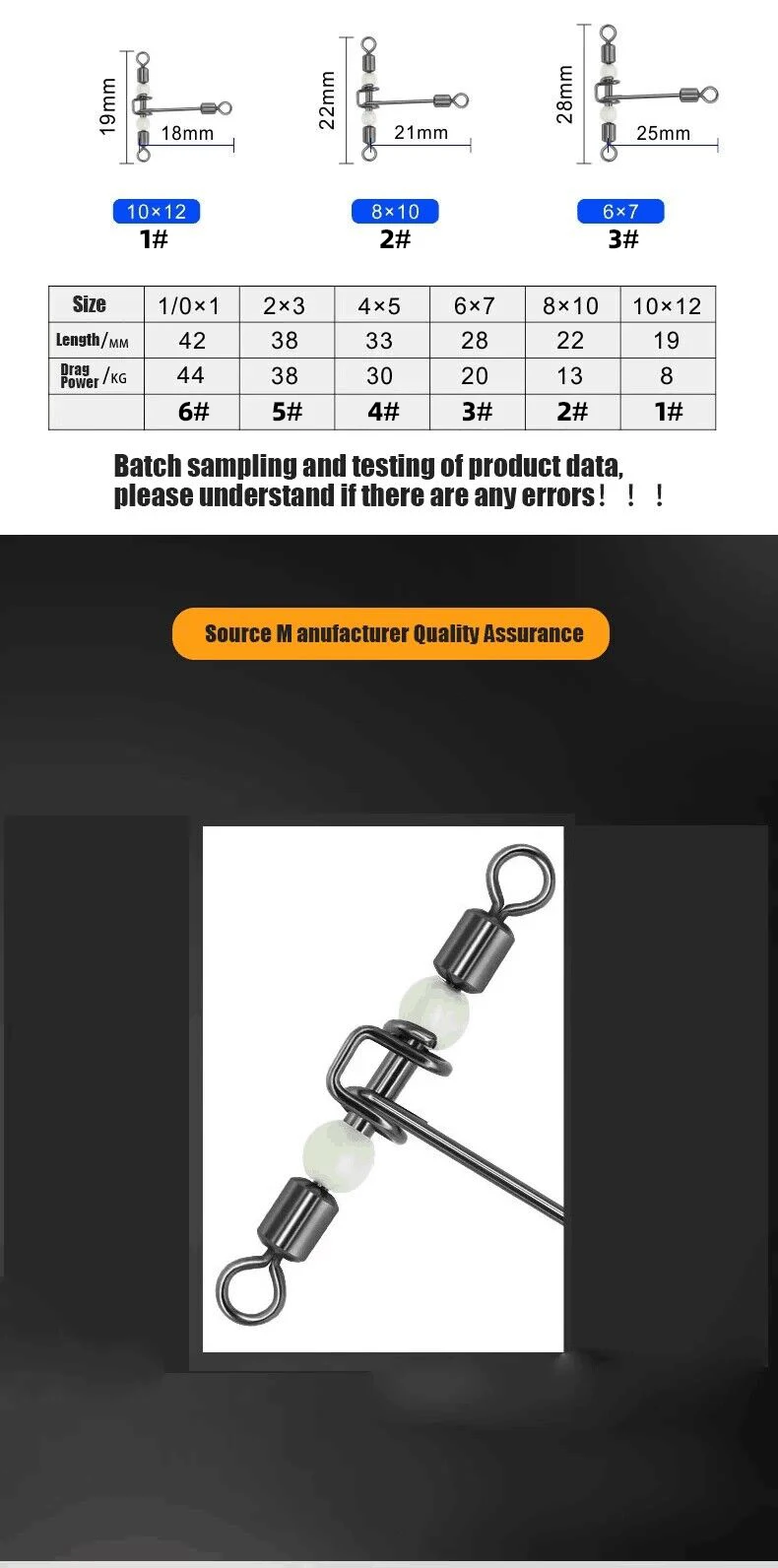 2: 6 Tamaño: este anillo de conexión de pesca tiene en total 6 tamaños, 00#/01#/02#/03#04#/05# Puede elegir el anillo de conexión apropiado según el tamaño del pez objetivo.