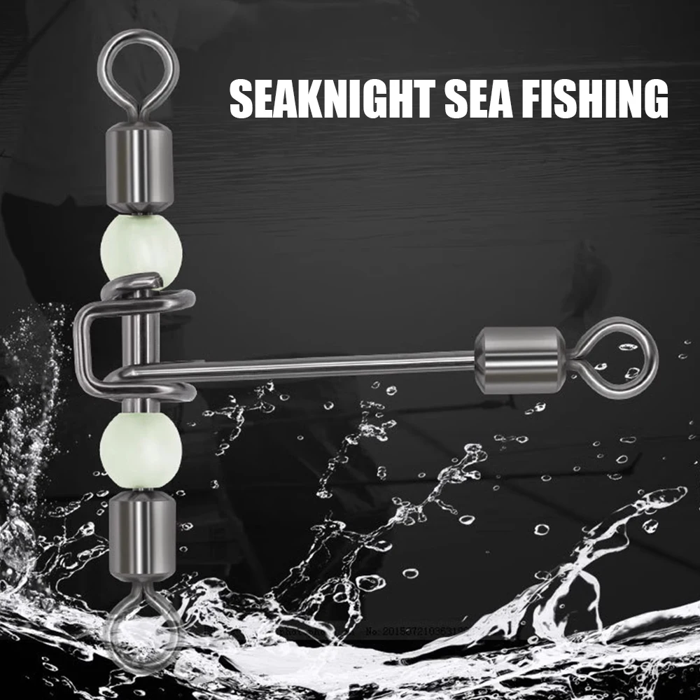 Conector de pesca de acero inoxidable SeaKnight 2024, 10 unidades/1 bolsa, giratorios de Metal, tres cabezales, anillos de conexión luminosos, giratorios de pesca en el mar a presión