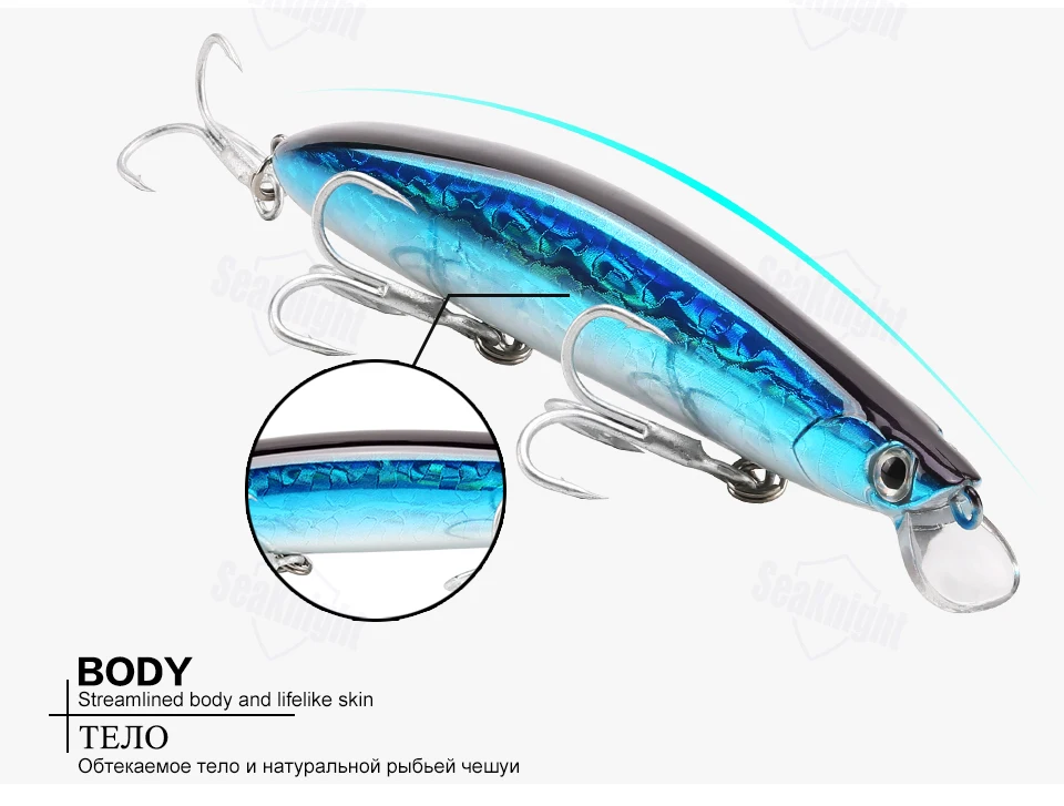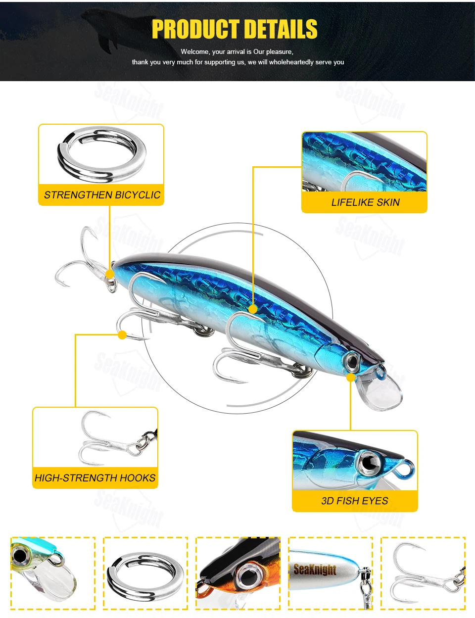 SeaKnight marca 1 pieza SK008 señuelo de pesca Minnow 20g 125mm cebo duro hundido aparejos de pesca de fundición larga 0,3-0,9 M