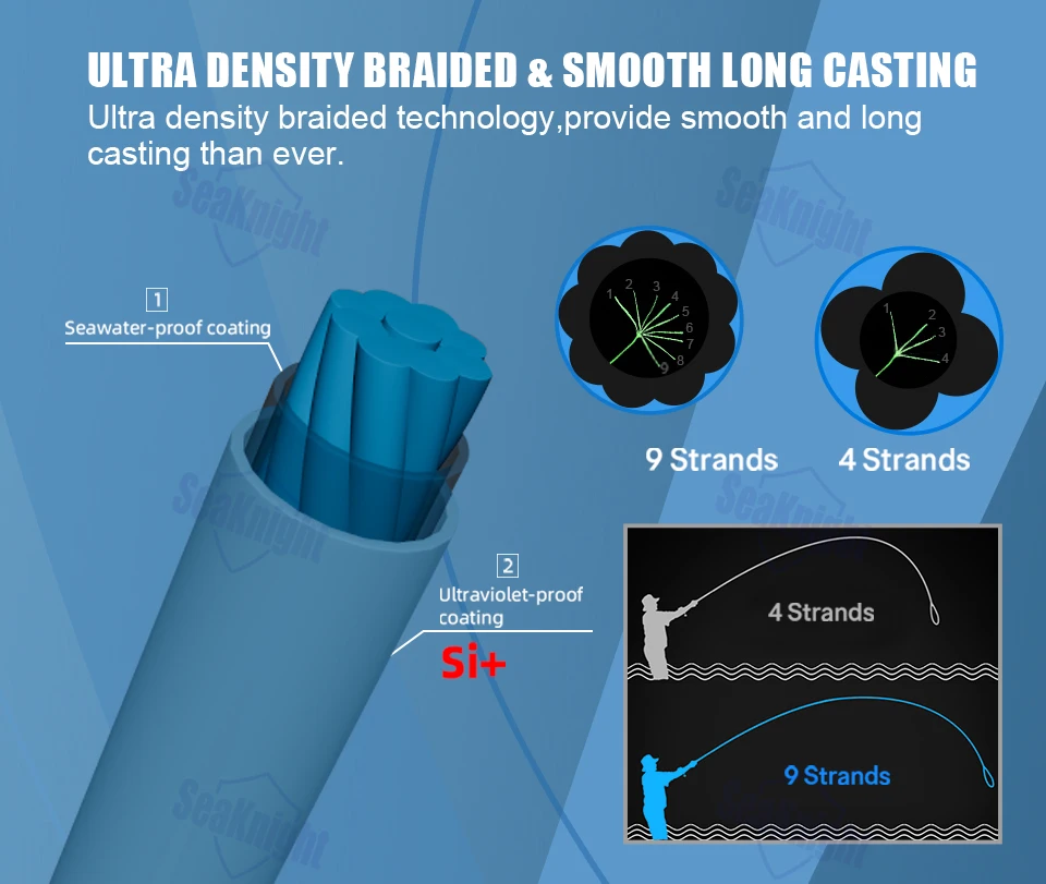 9 hilos y revestimiento de dos capas, ultra suave para lanzamientos largos