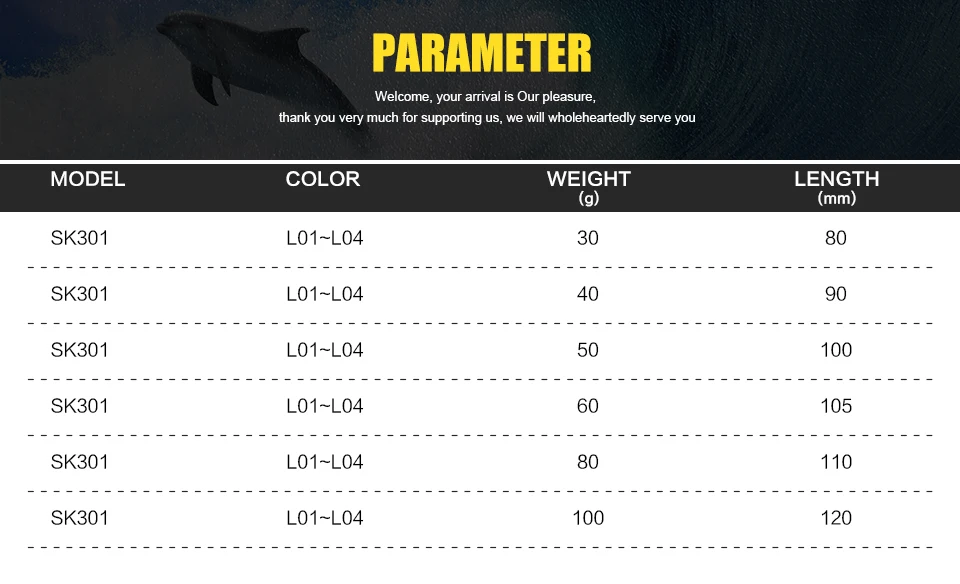 Lure Weight: 30g 40g 50g 60g 80g 100g