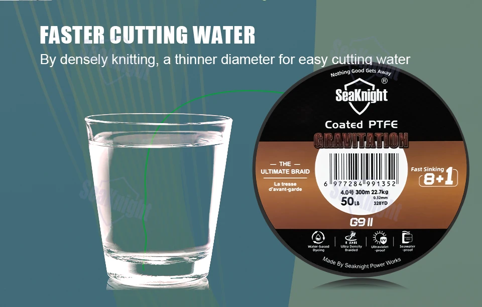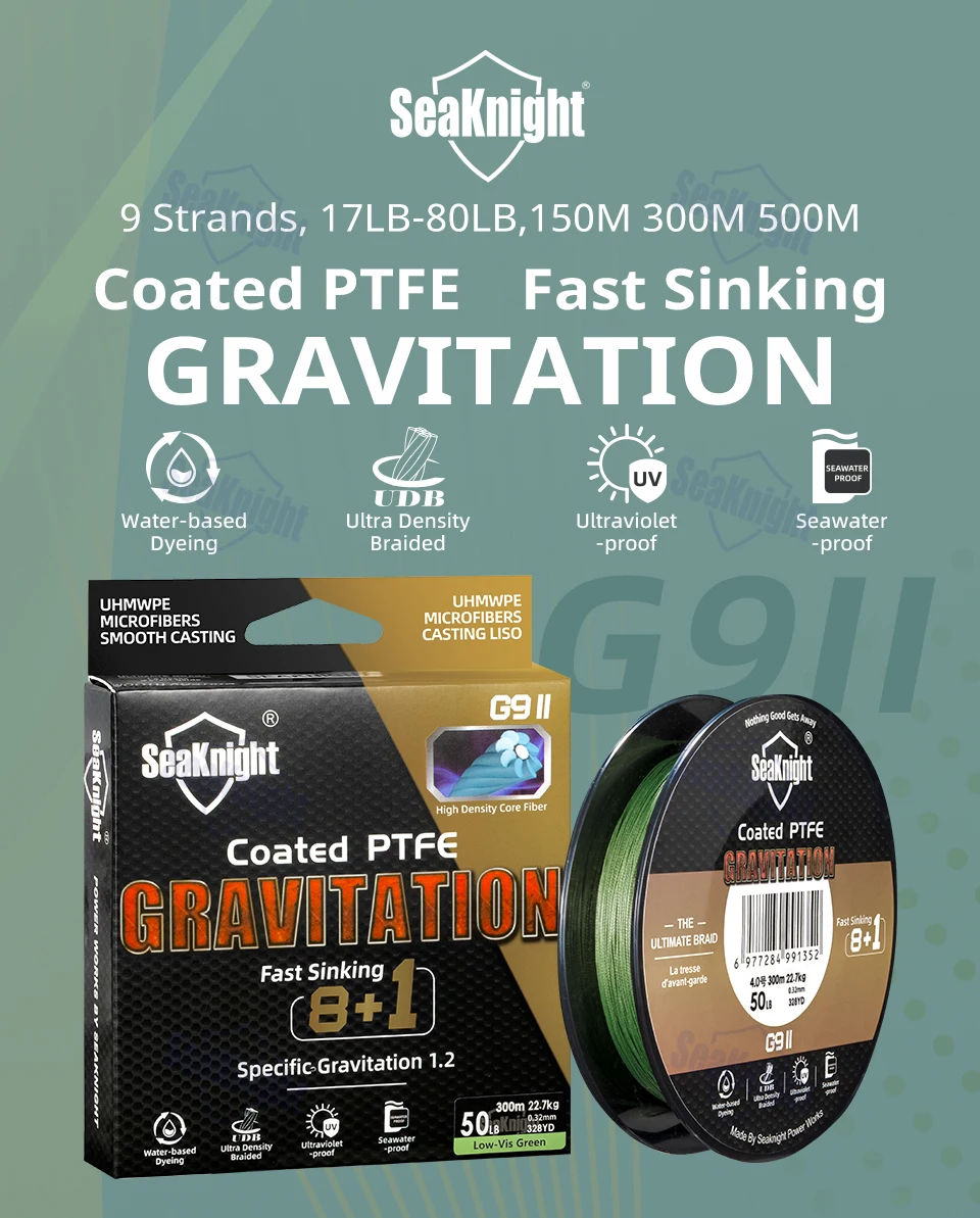 2024 Seaknight nueva línea trenzada Gravitation G9II línea de pesca de hundimiento rápido línea trenzada recubierta de PTFE 150M300M a prueba de agua de mar a prueba de rayos UV