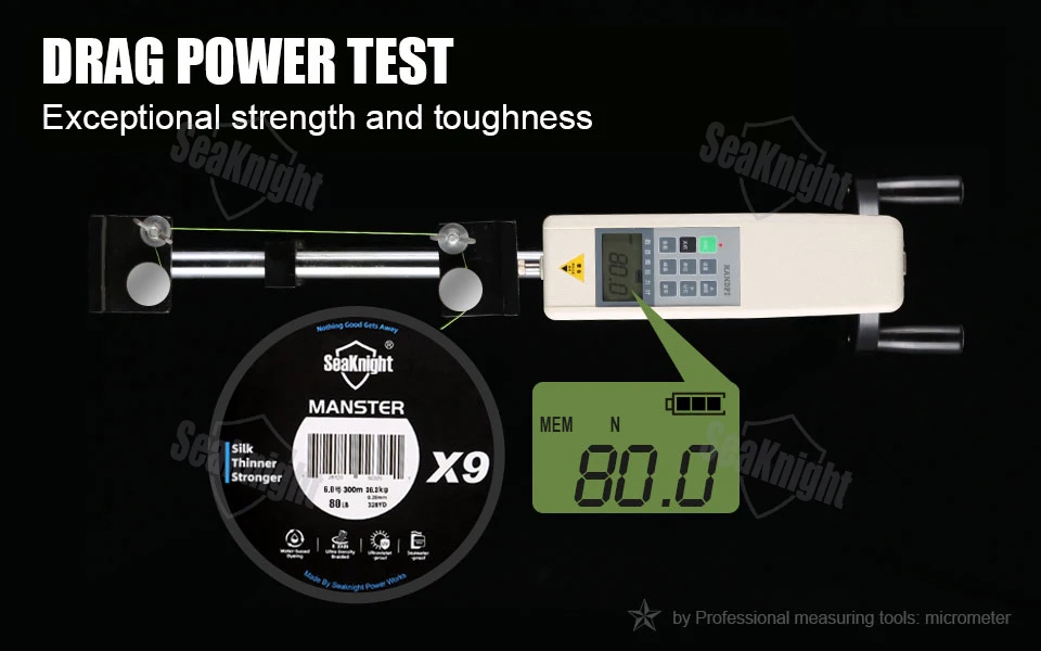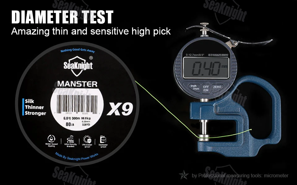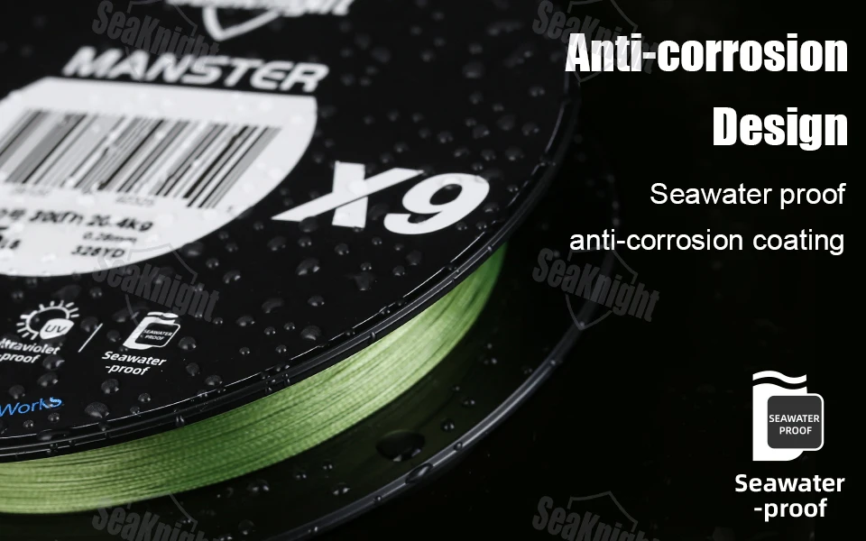 1: X9 línea: La línea de pesca adopta 8 + 1 tejido, más circular que las líneas de pesca de 4 tejidos y 8 tejidos, muy adecuado para el lanzamiento de largo alcance.
