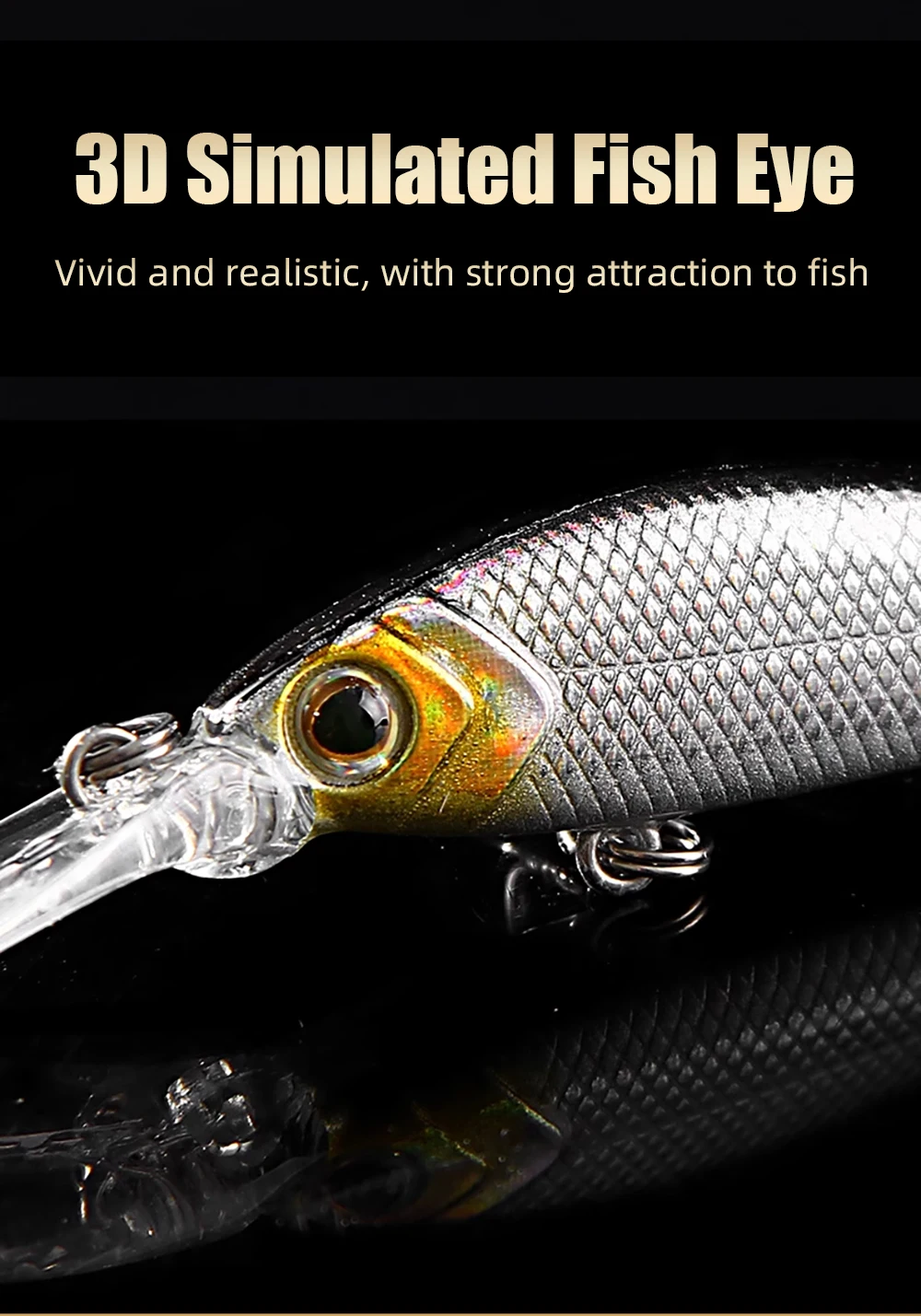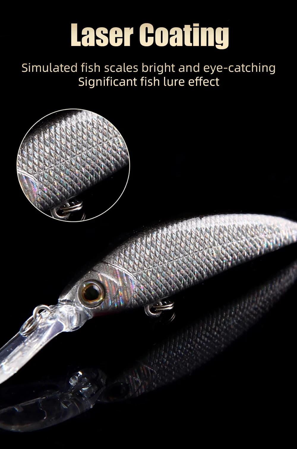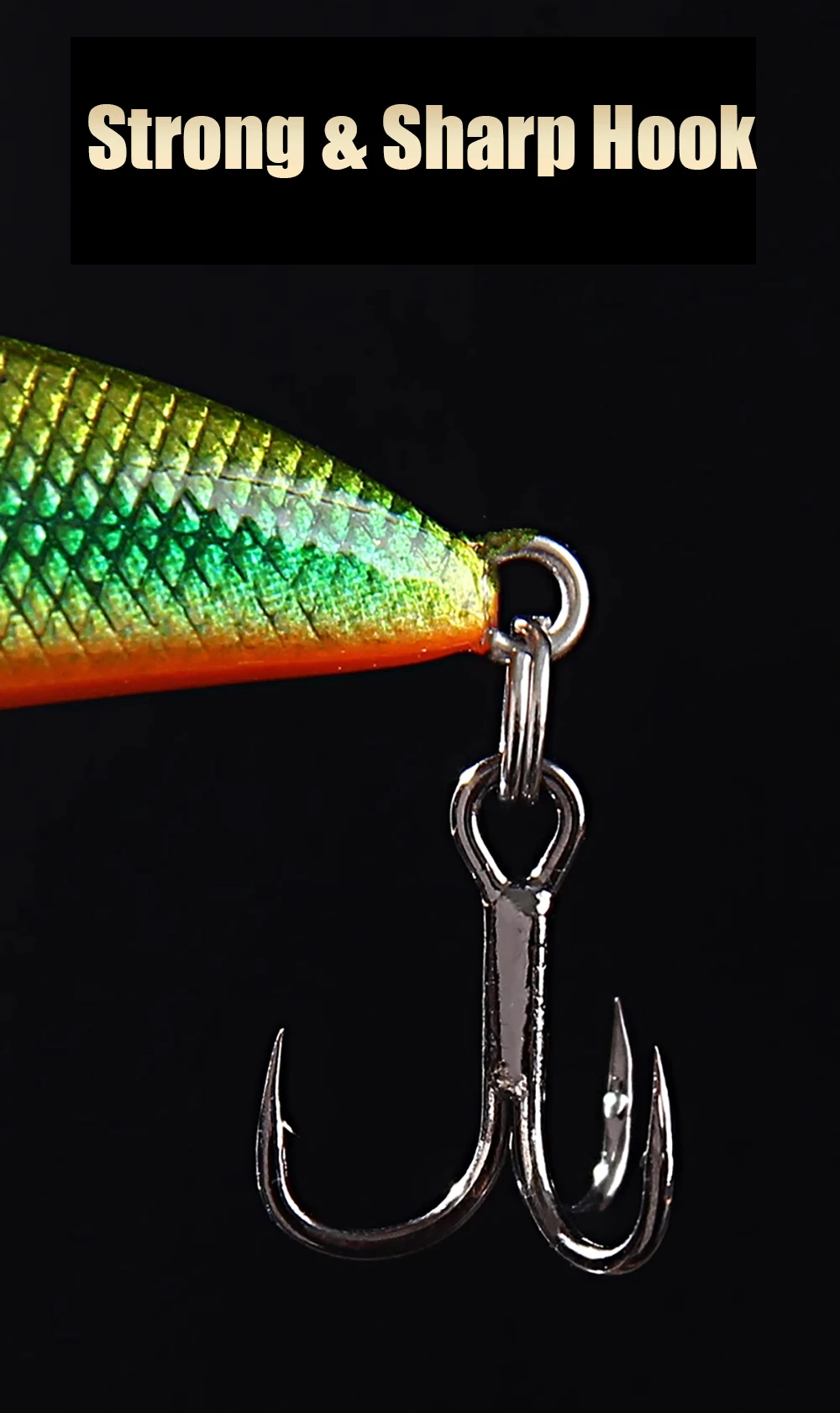 Características:1. Ganchos: BKK HOOKS, anticorrosión, afilados, más fuertes, potentes, duraderos, de agua dulce y de mar.2. Simulación (láser): Esta piel de pez mulación la hace más atractiva.3. Bolas de metal: Bolas de acero inoxidable en el interior, primero mantienen el equilibrio del señuelo de pesca, segundo lanzamiento de larga distancia.