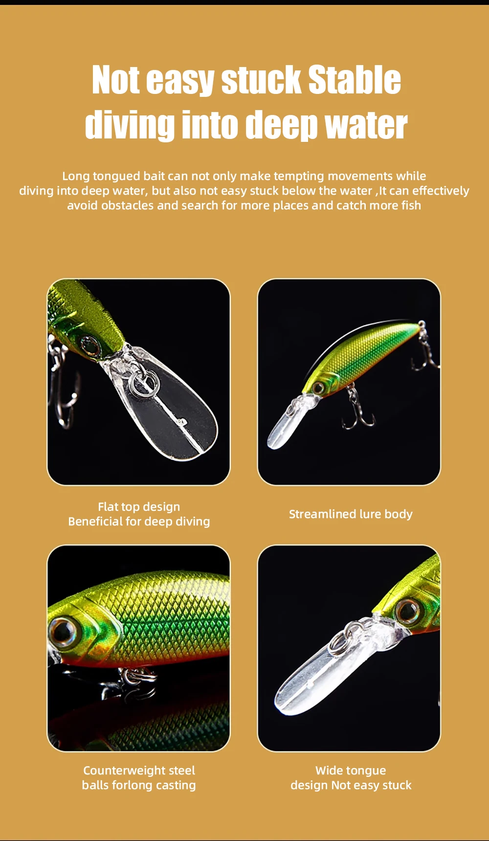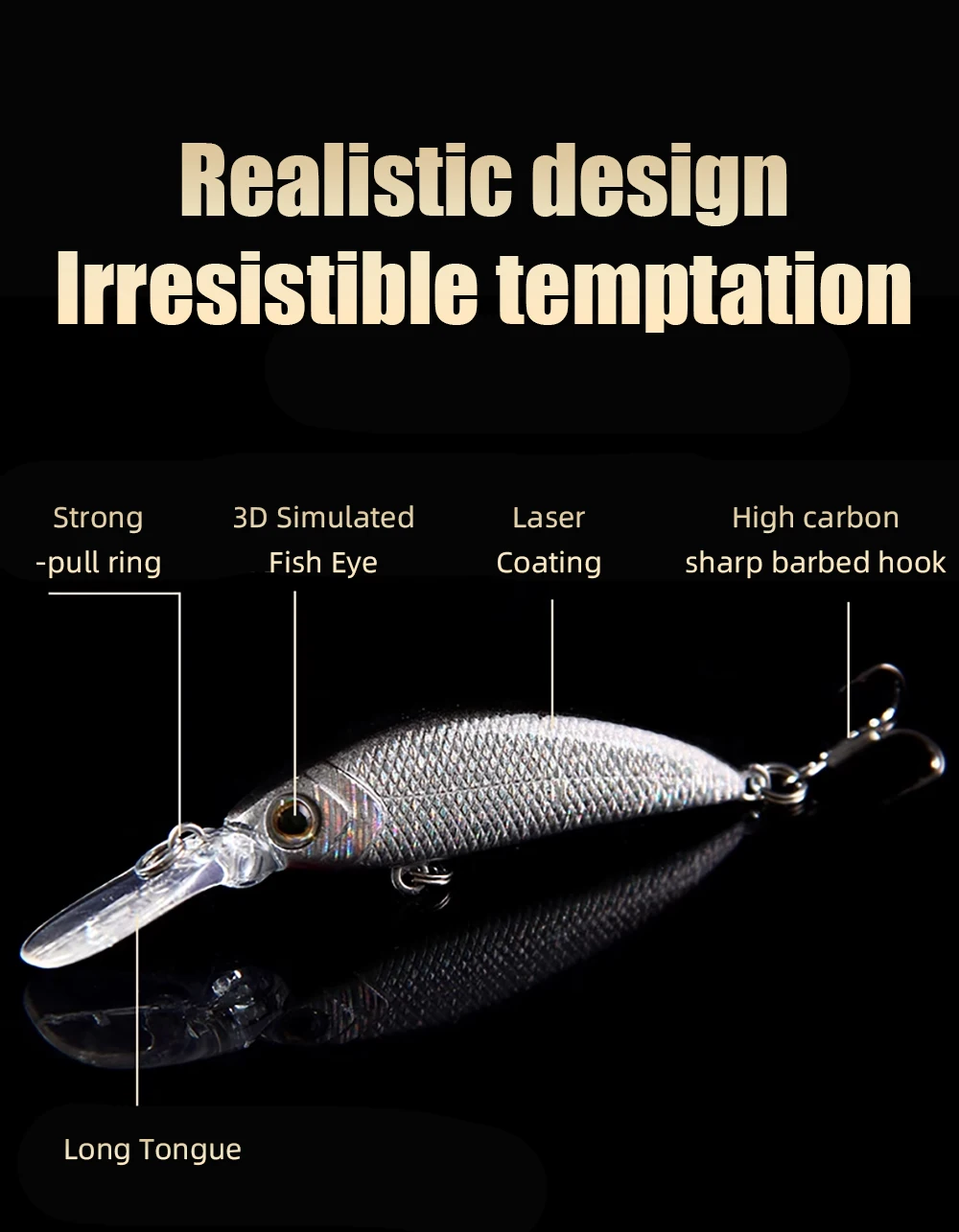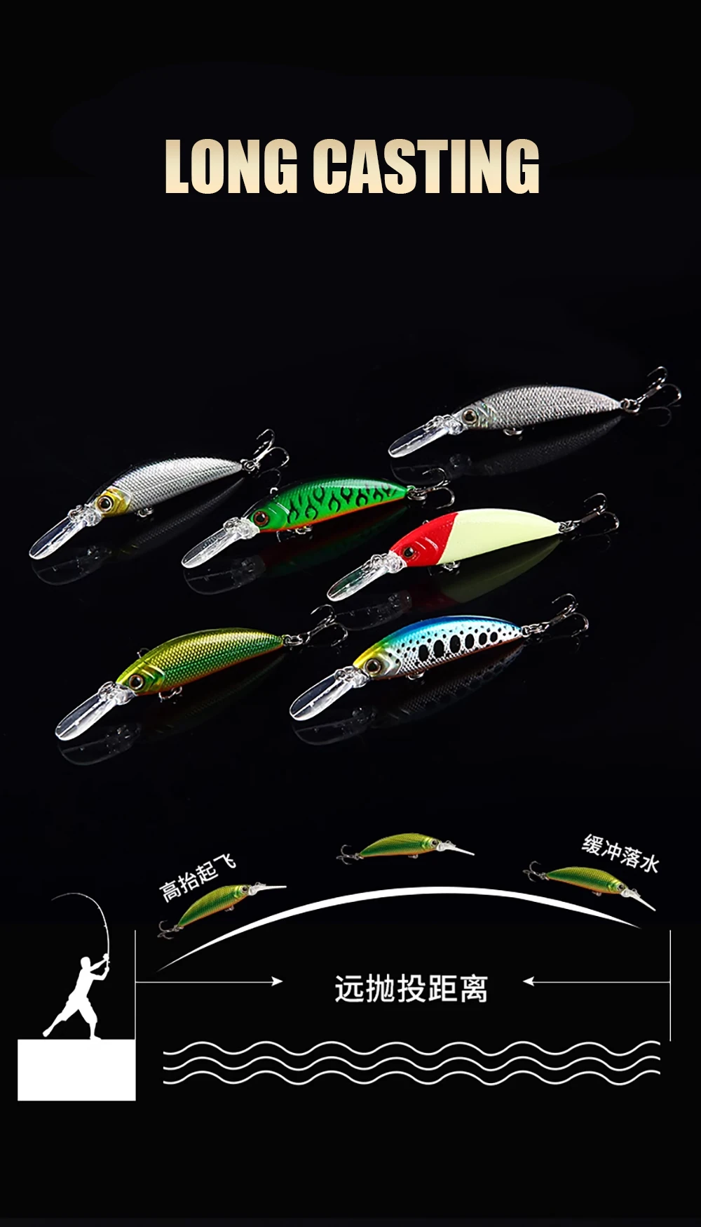 Características:1. Ganchos: BKK HOOKS, anticorrosión, afilados, más fuertes, potentes, duraderos, de agua dulce y de mar.2. Simulación (láser): Esta piel de pez mulación la hace más atractiva.3. Bolas de metal: Bolas de acero inoxidable en el interior, primero mantienen el equilibrio del señuelo de pesca, segundo lanzamiento de larga distancia.