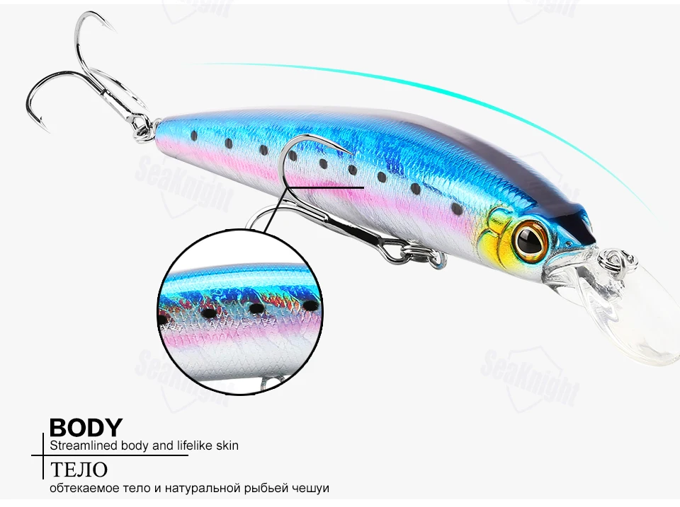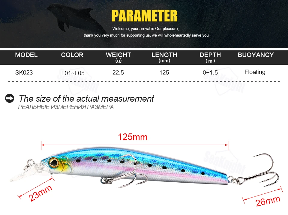 Valores de cebo de pesca de gato antiguo para anzuelos de pesca de playa de palma oeste, kits de señuelos, señuelo de pesca blabbermouthSeaKnight SK023 Minnow 22,5 g 125 mm 0-1.5 M flotante 1 pieza cebo duro señuelo de pesca ojos 3D señuelo Minnow pesca en agua salada agua dulce