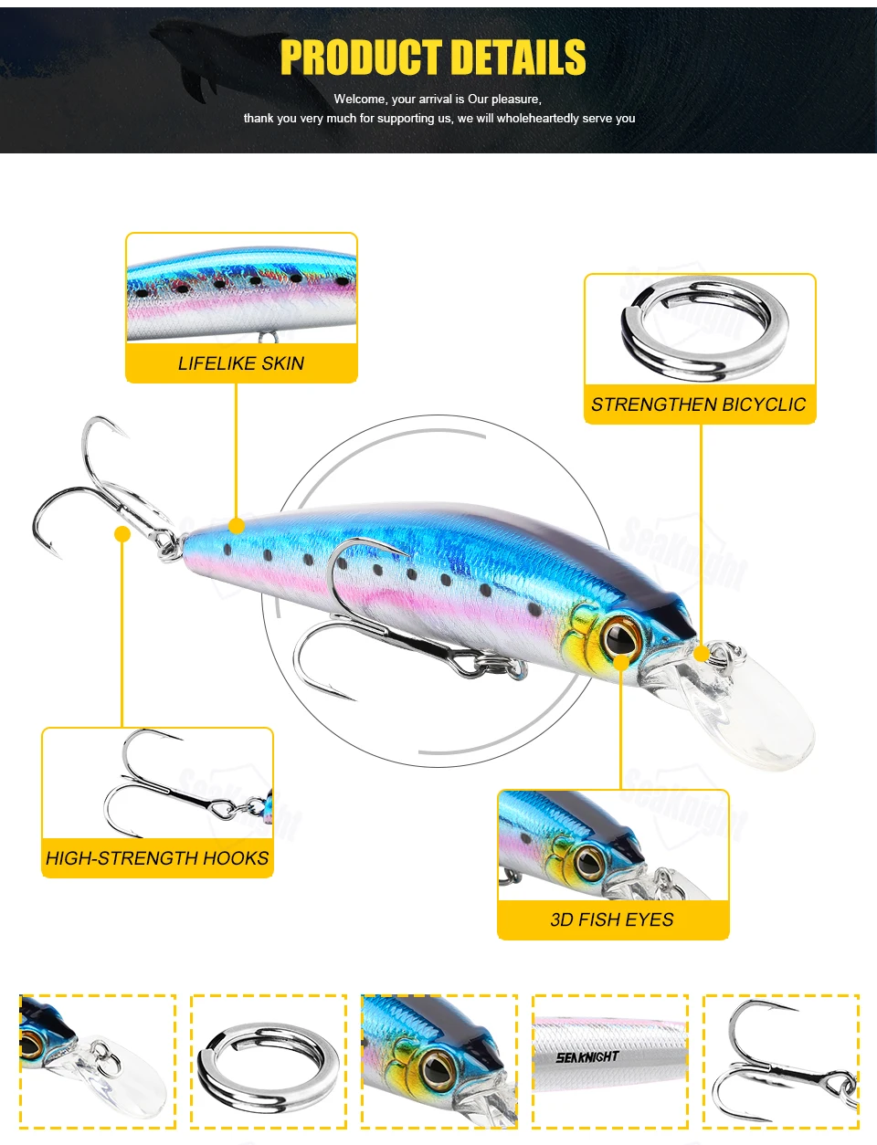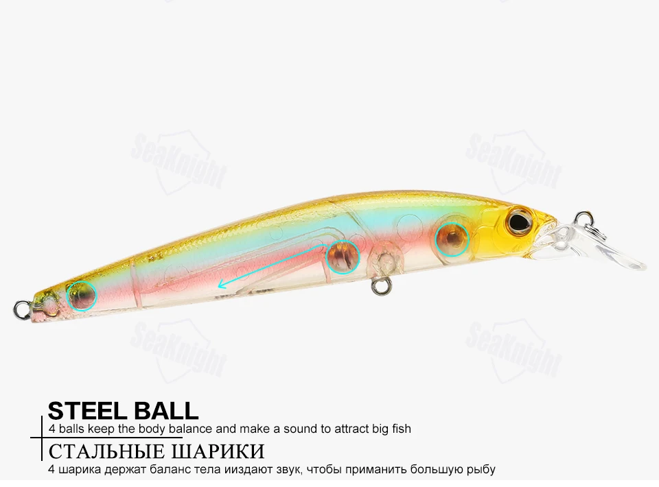 Características:1. Ganchos: anticorrosión, mayor potencia, duradero, agua de mar de agua dulce universal.2.Piel de pez de simulación (laser): el diseño de la piel de pez de simulación la hace más atractiva para los peces grandes.3.Bolas de metal: bolas de acero inoxidable en el interior, para mantener el equilibrio del señuelo de pesca, para lanzar a distancia más lejana.4.Anillos bicíclicos más fuertes: fortalecen el doble círculo y aumentan la resistencia al tirón.Ojos de pez 5.3D: ojos de simulación 3D, grandes y brillantes, más tentadores y reflectantes.6.Embalaje del producto: Cada cebo está empaquetado en una bonita caja de PVC al por menor.Detalles del producto:Marca: SeaKnightModelo de señuelo: Minnow SK023Tipo de señuelo: señuelo de pesca duroPeso del señuelo: 22,5 g/0,79 ozLongitud del señuelo: 125 mm/4,92 pulgadasProfundidad de buceo: 0-1,5 M / 0-4,92 piesFlotabilidad: señuelo flotanteGanchos: equipados con 2 ganchos anticorrosión.Ojos: ojos de pez 3DAnillos: Biíclicos5 colores: L01,L02,L03,L04,L05Característica: Minnow grandeEmbalaje:Peso del artículo: 45 gPeso del paquete: 60 gEl paquete incluye: 1 unidad * señuelo de pesca (puede elegir colores: L01, L02, L03, L04, L05)