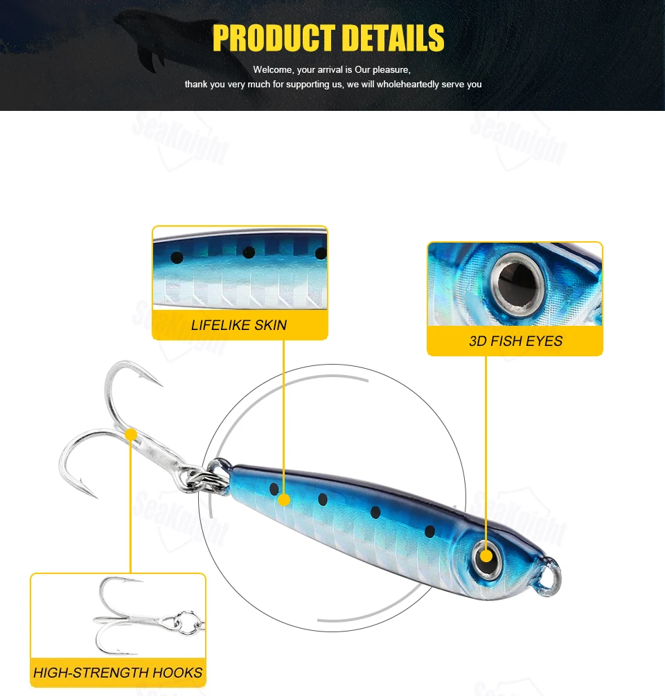 SeaKnight SK302 Jig 21g 28g 30g 40g 1PC cuchara señuelo de Pesca de Metal cebo Artificial 3D ojos océano señuelos Pesca aparejos de Pesca