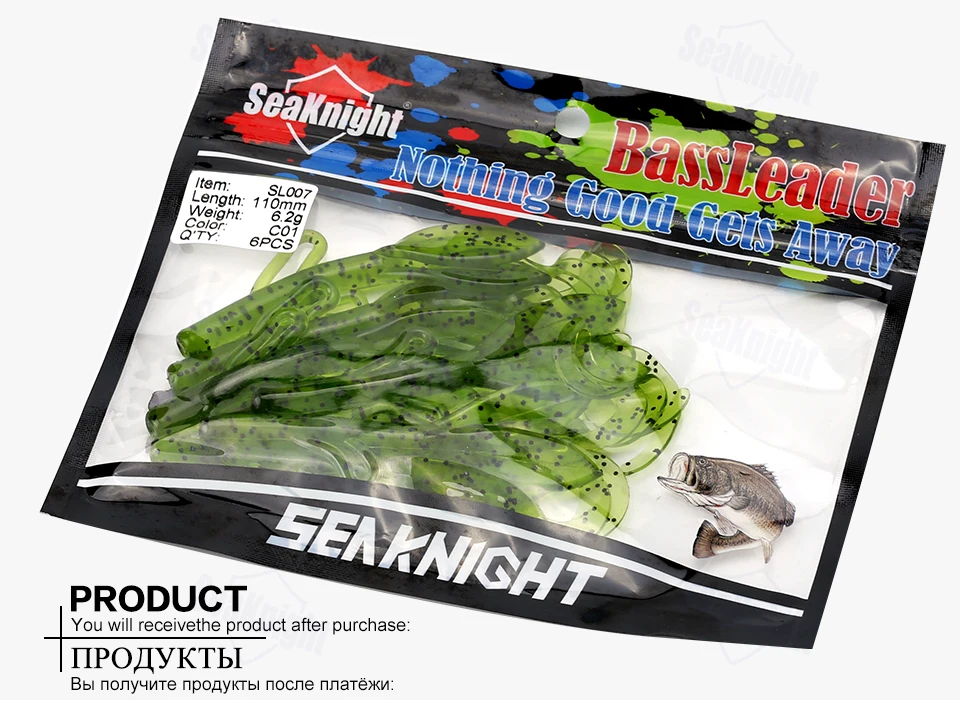 SeaKnight SL007 señuelo de pesca de camarones 6,2g 110mm 6 unids/bolsa cebos blandos cebo de silicona para lubina aparejos de pesca de oruga de agua salada/dulce