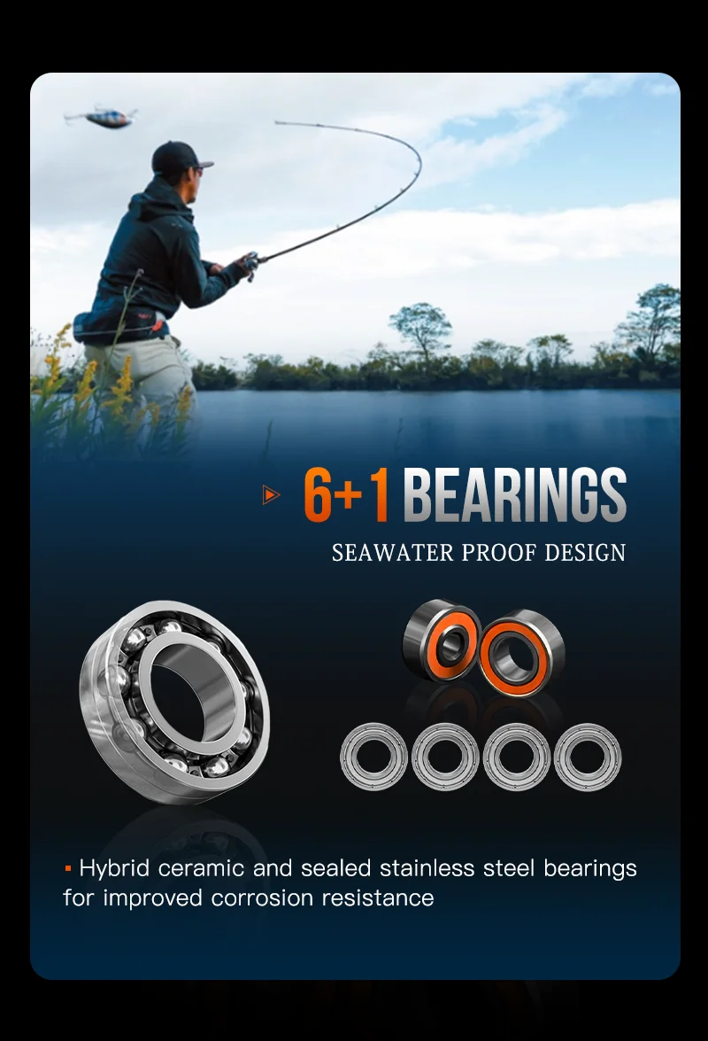 El rodamiento de cerámica híbrido tiene una suavidad que los rodamientos ordinarios no tienen. Y es más resistente a la corrosión cuando se enfrenta al agua salada. Mejora la vida útil.