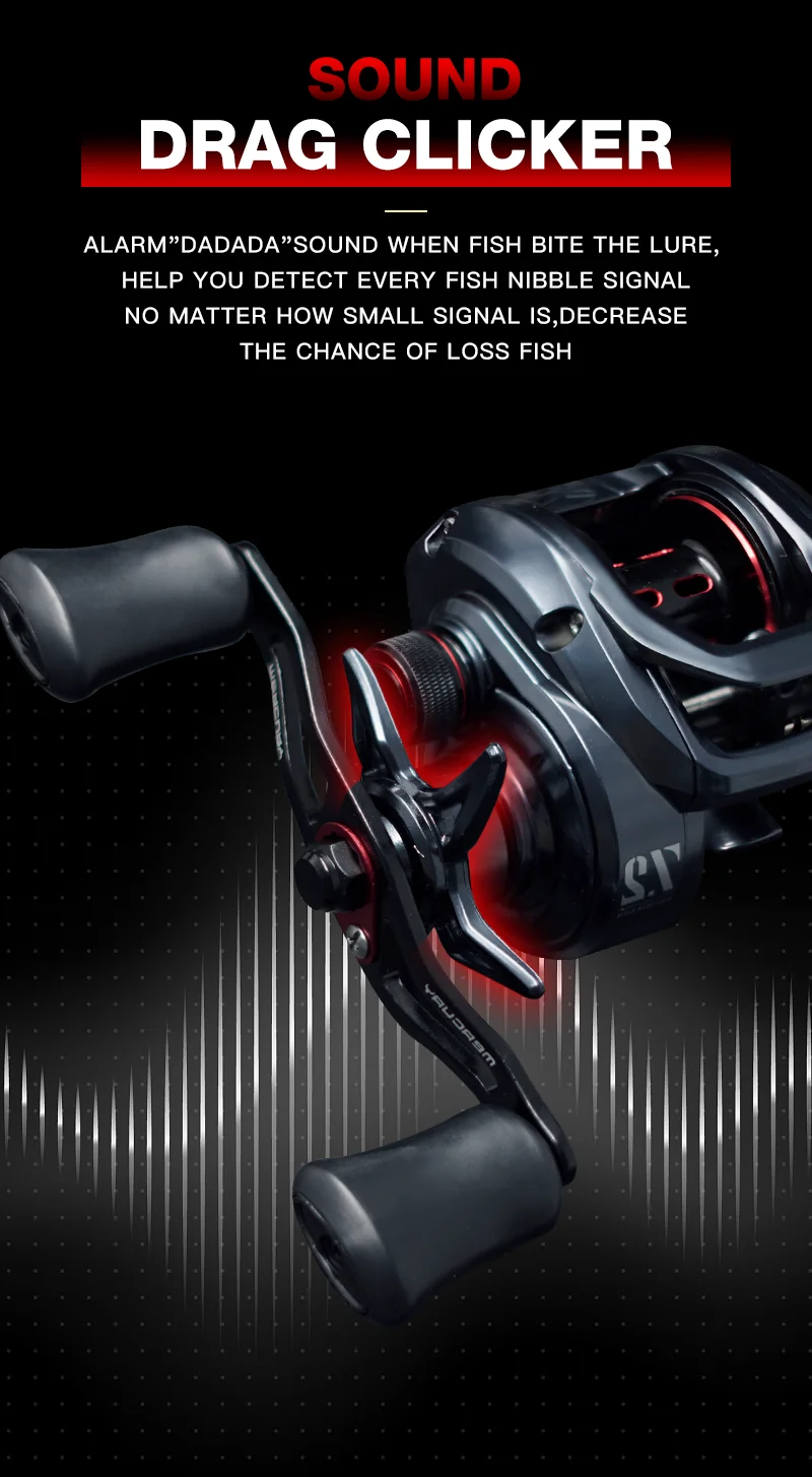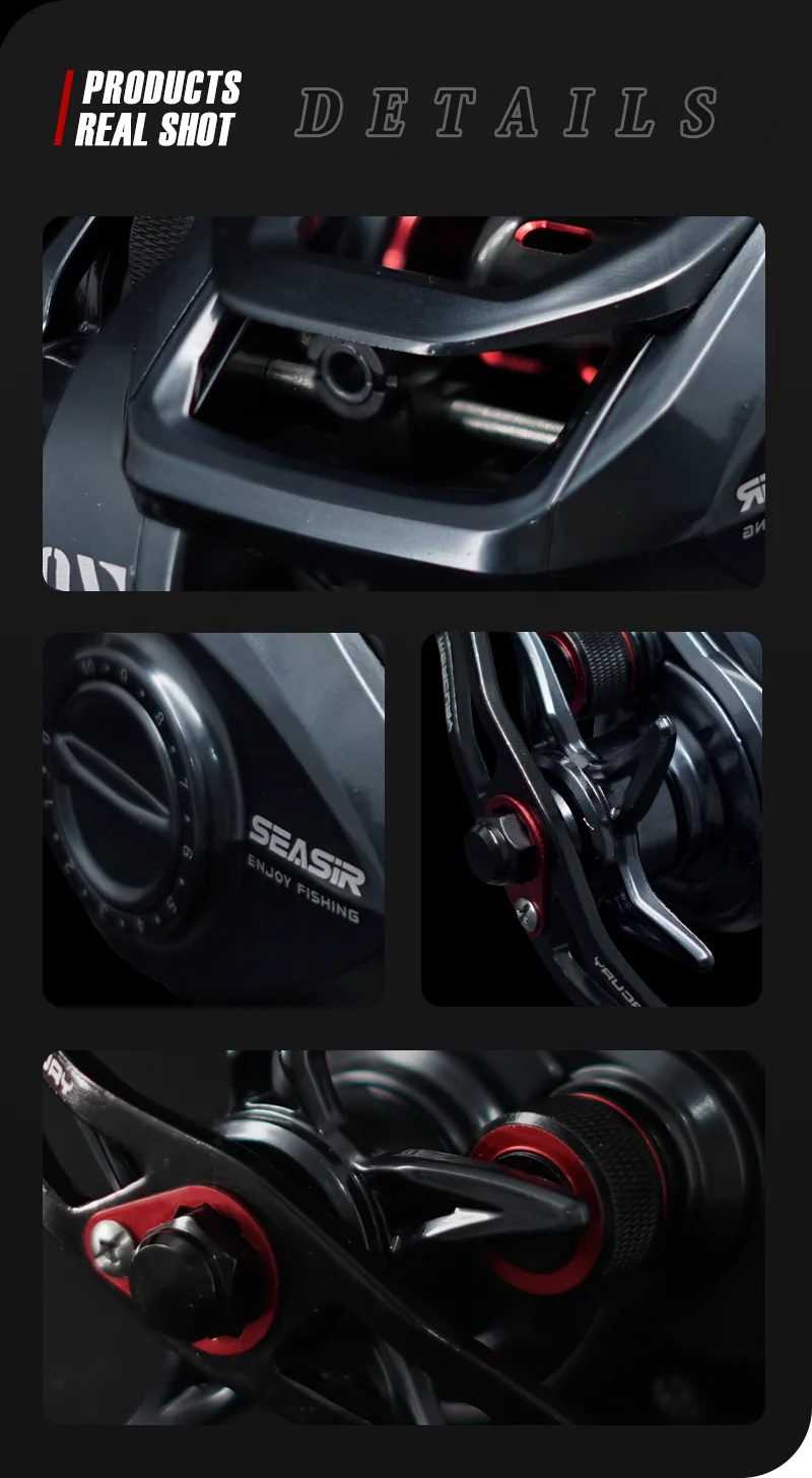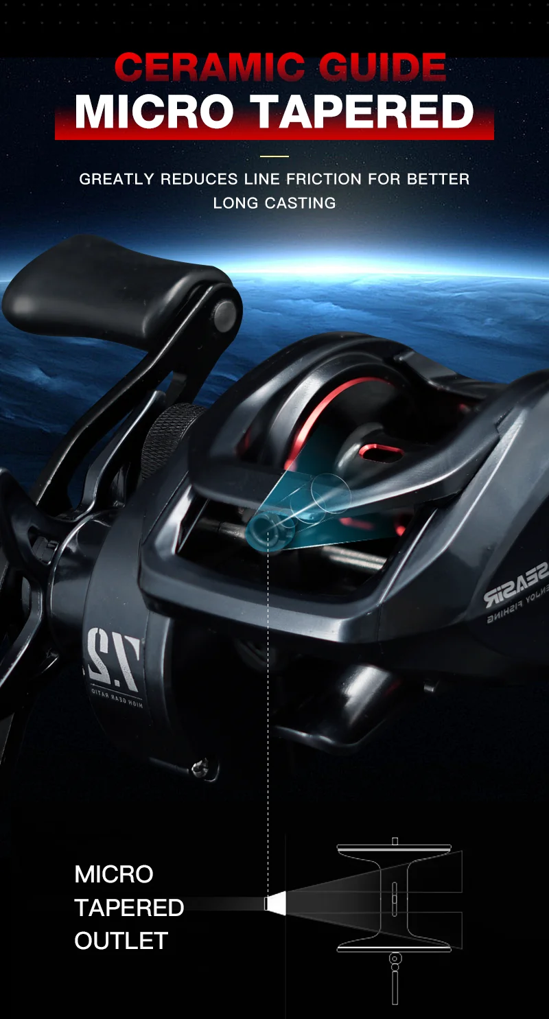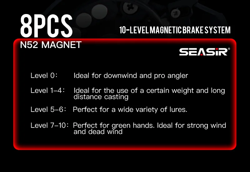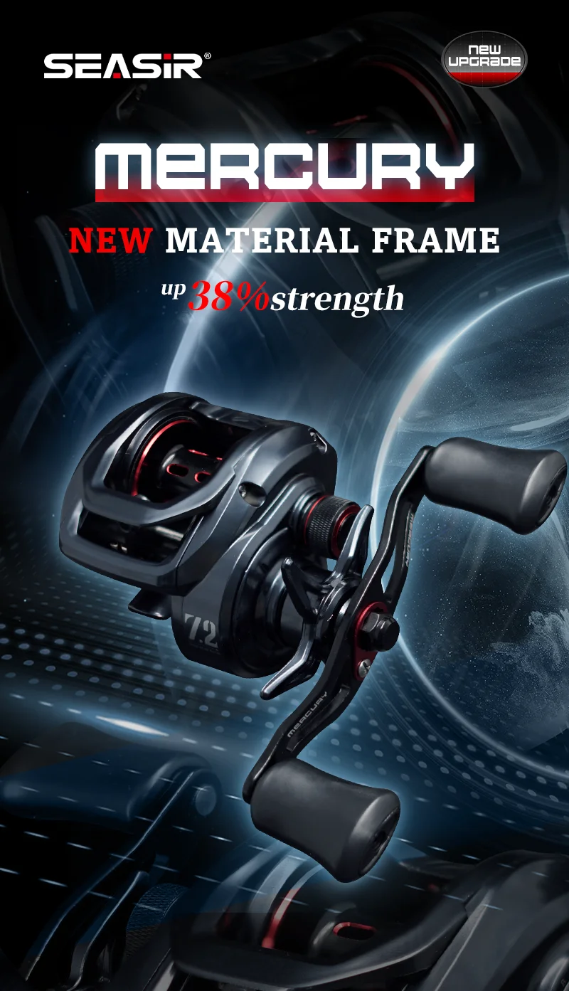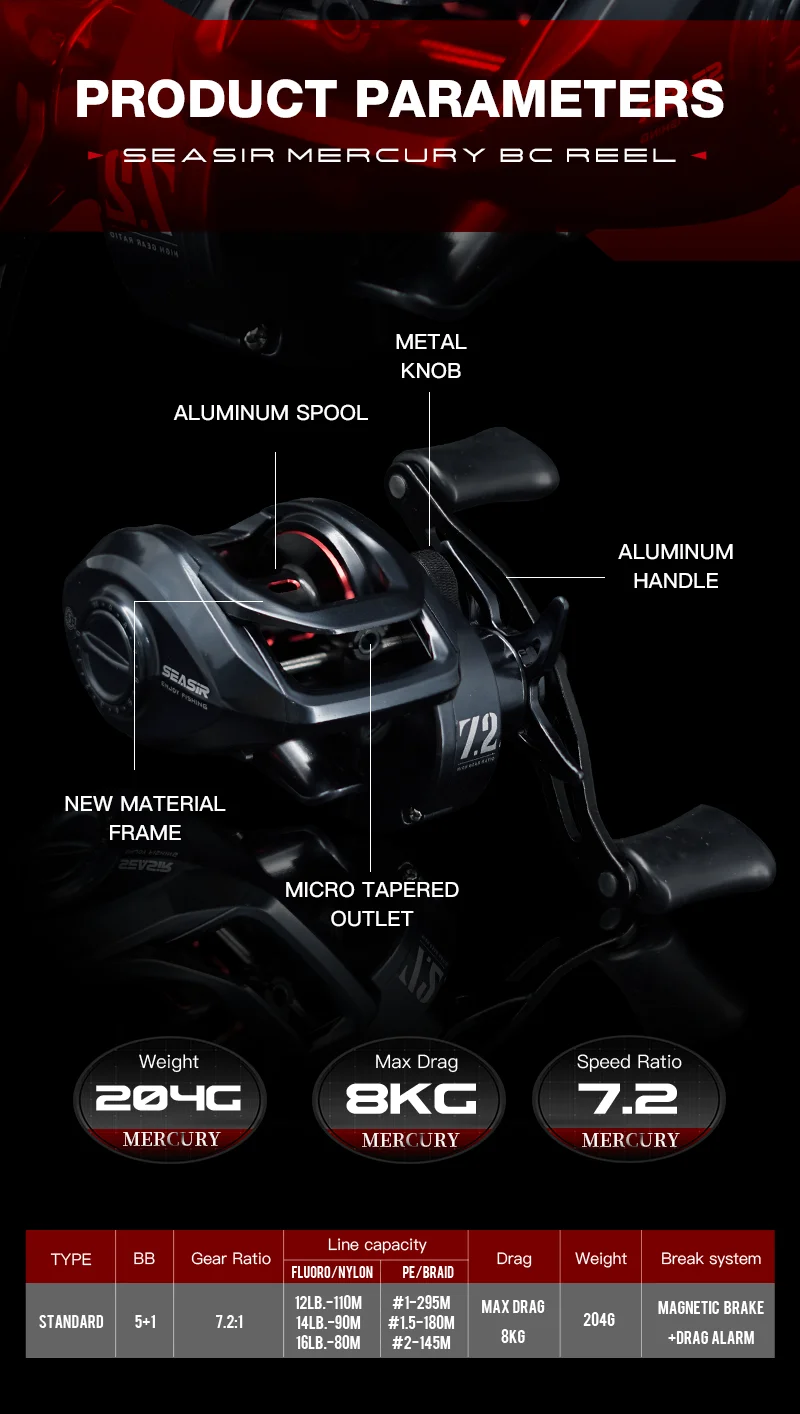 SEASIR Mercury Baitcasting Carrete de pesca 5 + 1BB 7,2: 1 Relación de engranajes Arrastre 8kg Sistema de freno magnético de 10 niveles con clicker de arrastre magnético de 8 piezas N52