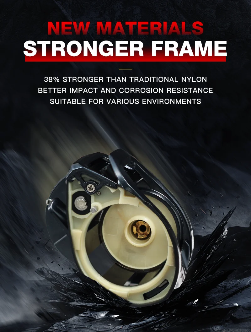 El cuerpo está hecho de nuevo material SEASIR que es 38% más fuerte que el material de nylon ordinario y puede permanecer estable incluso cuando se somete a golpes grandes