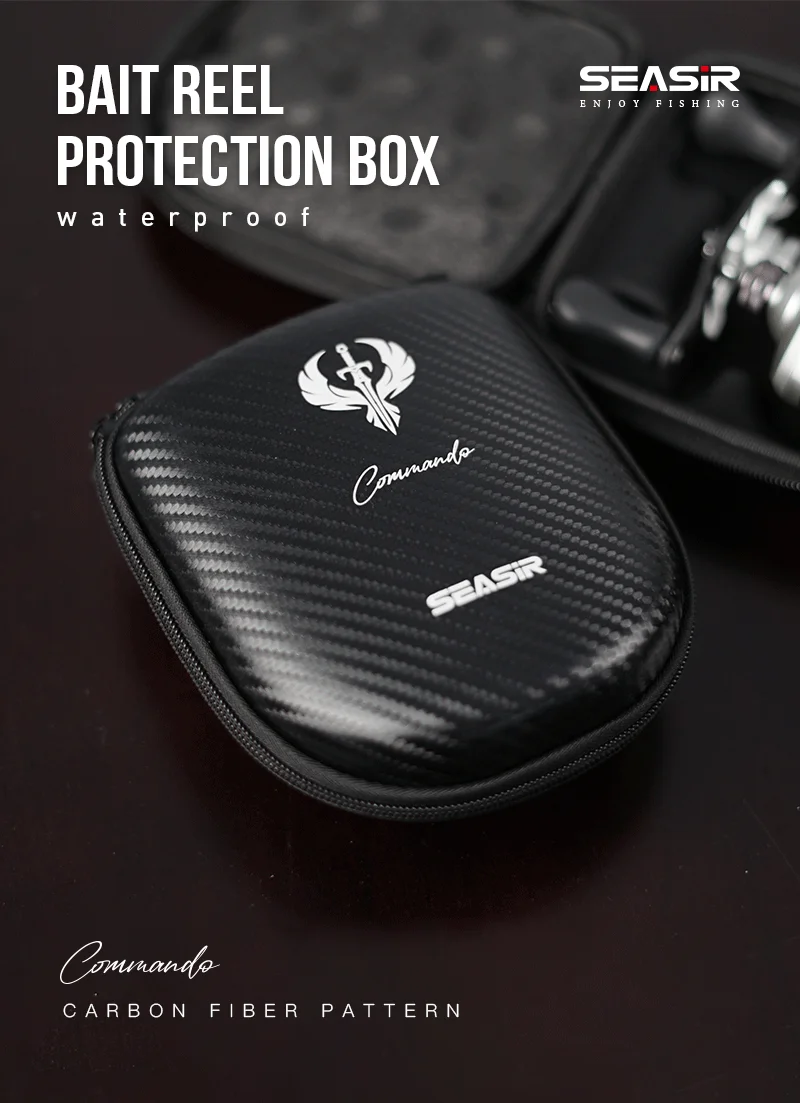 SEASIR Commando-bolsa para carretes de pesca Baitcasting con patrón de fibra de carbono, EVA, impermeable, bolsa para carretes de tambor de fundición de cebo, funda protectora, bolsa para aparejos de rueda de pesca izquierda derecha