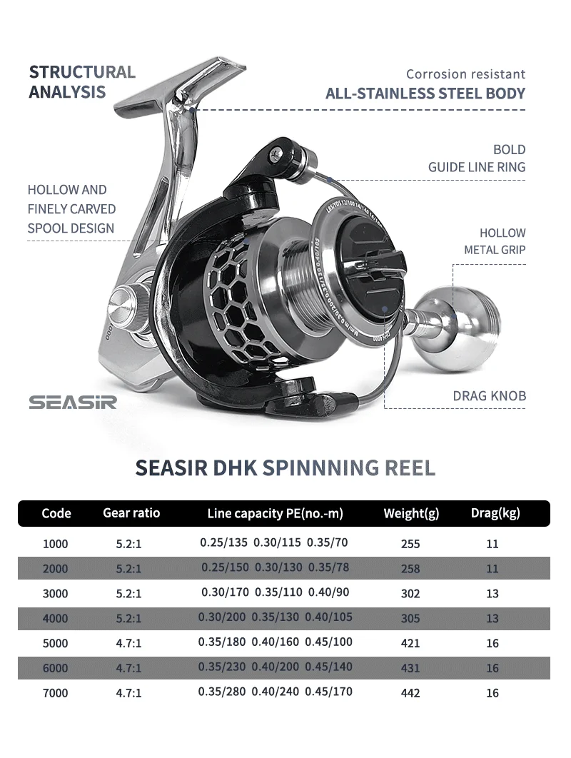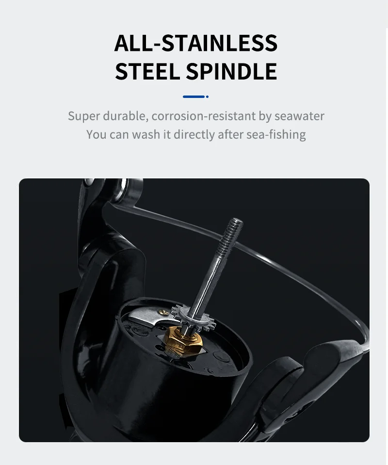 1. Husillo totalmente de acero inoxidable, súper duradero, resistente a la corrosión con el agua de mar, puedes lavarlo directamente después de pescar en el mar.
