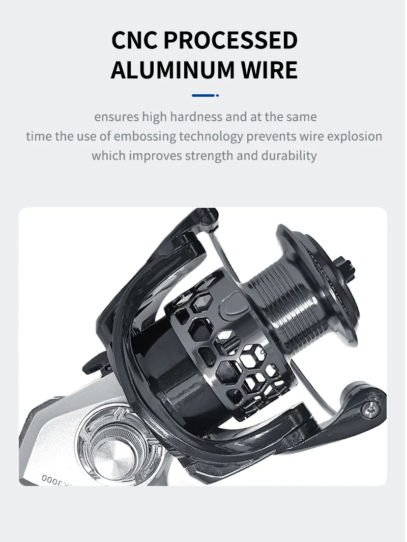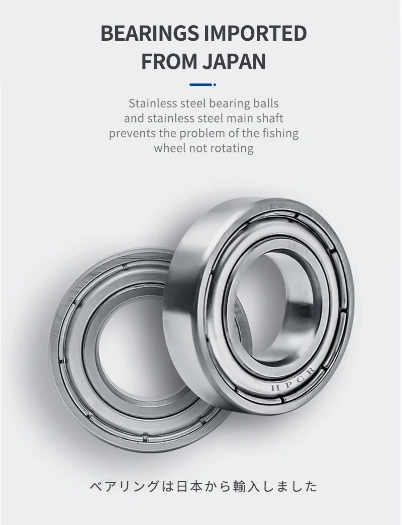 2.14+1 rodamientos, bolas de rodamiento de acero inoxidable y eje principal de acero inoxidable, evitan el problema de que la rueda de pesca no gire.