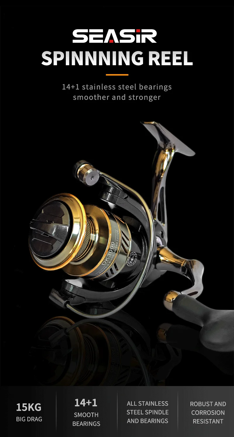 Seasir 14+1 BB 5.2:1 carrete giratorio con relación de engranaje serie 1000-7000 carrete de pesca con copa de alambre de metal para agua salada y agua dulce